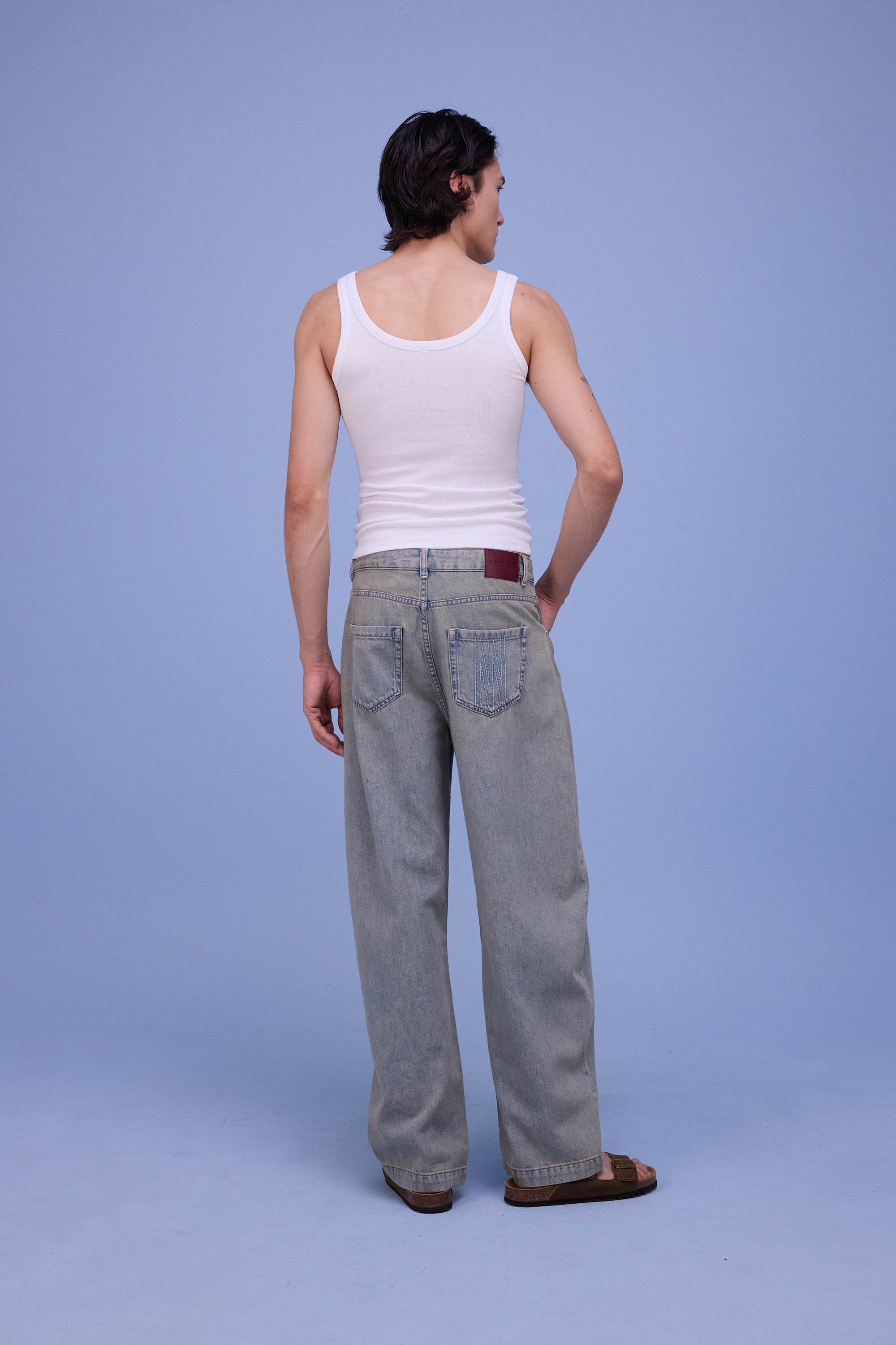 Hivan est confectionné en denim sandwashed, ce qui lui confère une couleur bleu-gris-jaune unique, la teinte denim parfaite pour l’été. Le tissu est également adapté à la saison : souple et léger.