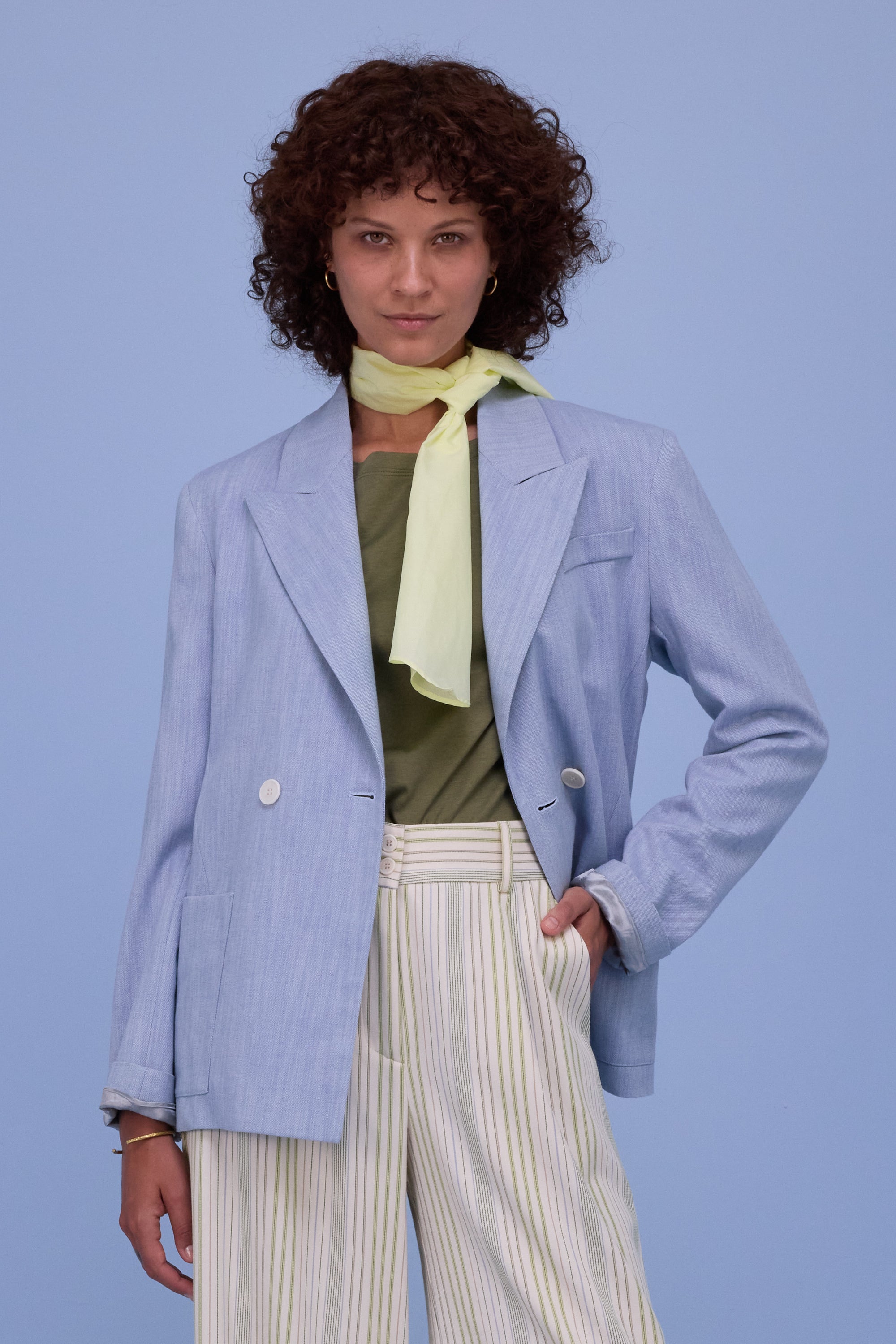 Vielseitiger Schal aus Baumwollpopeline. Der Schal ist lang genug, um ihn als Krawatte zu binden oder auf den Kopf zu binden. Dieses Accessoire rundet jedes Outfit noch ein bisschen ab.