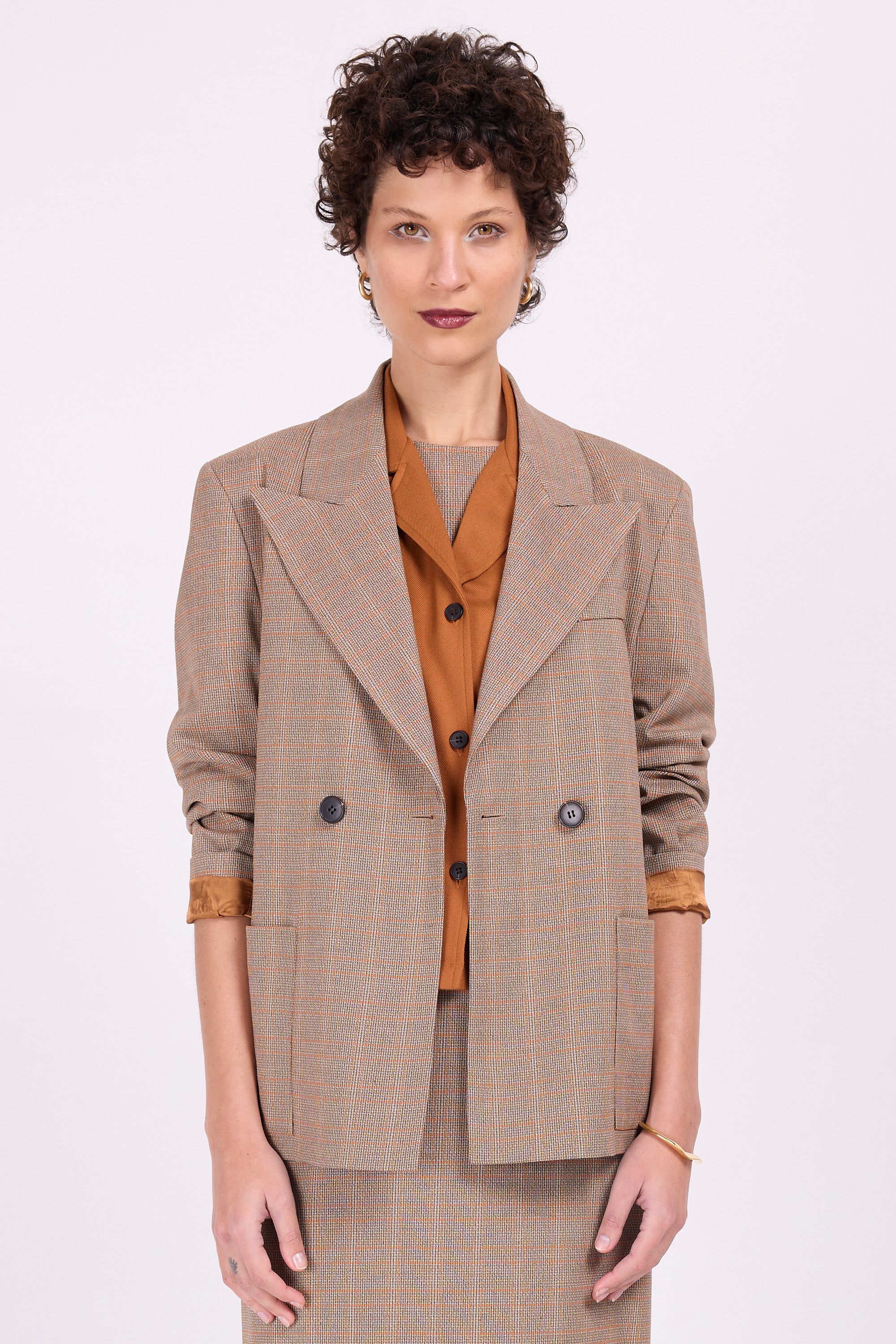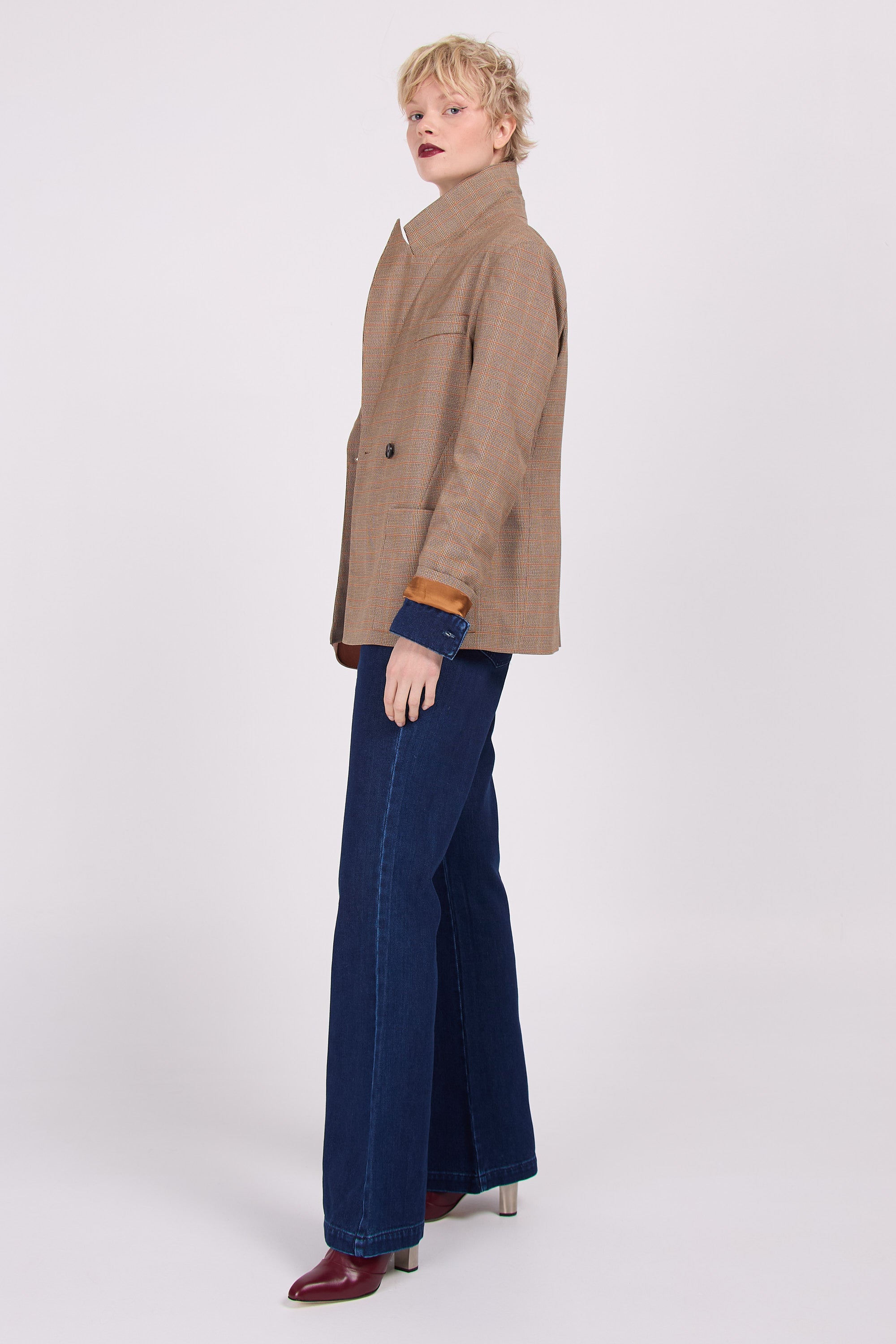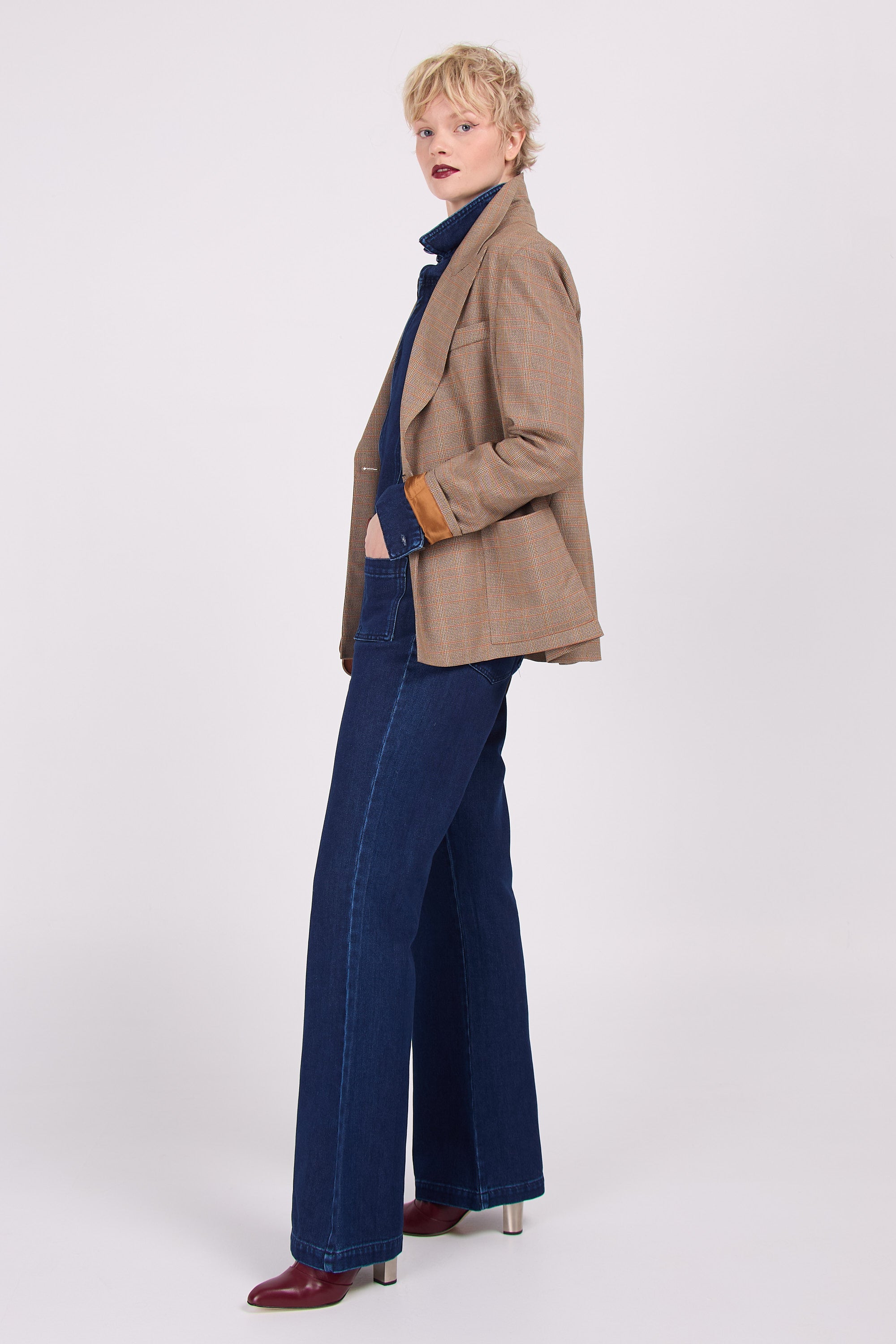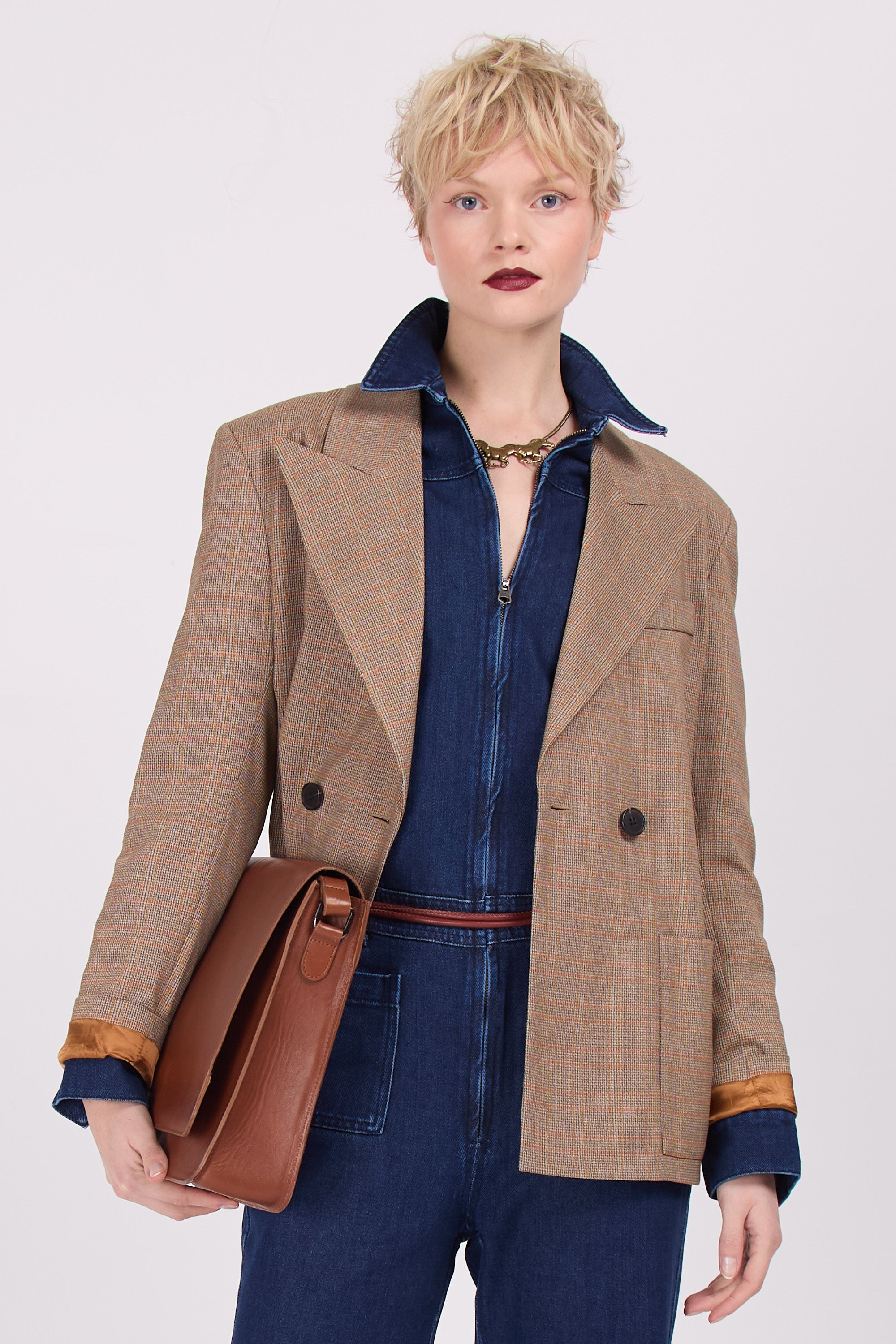 In der SS24-Kollektion eingeführt und aufgrund des Erfolgs jetzt zurück. Diese karierte Version verströmt „Opa-Chic“-Vibes und passt perfekt zum Kleid Emelia. Oder setzen Sie auf einen Stilmix und kombinieren Sie es mit dem Jeans-Jumpsuit.
