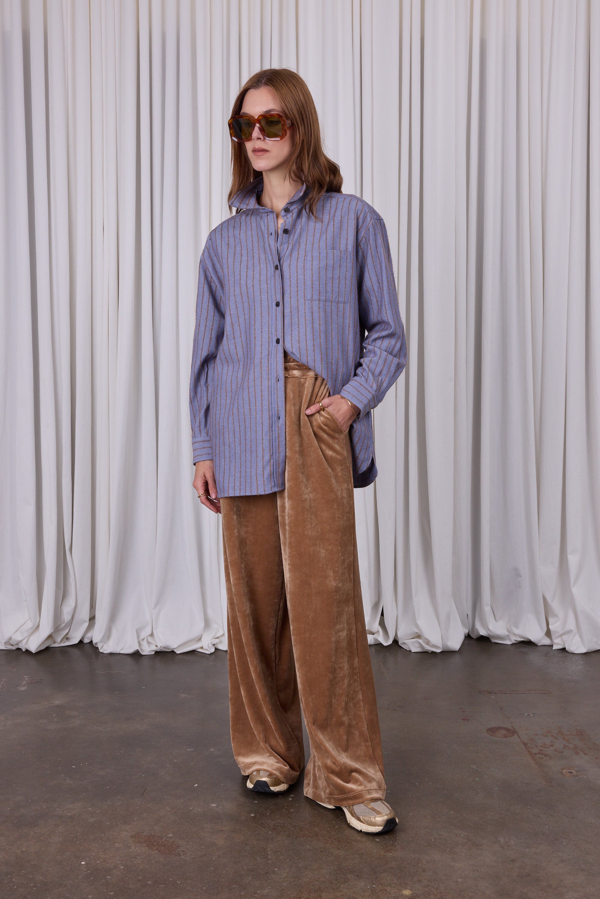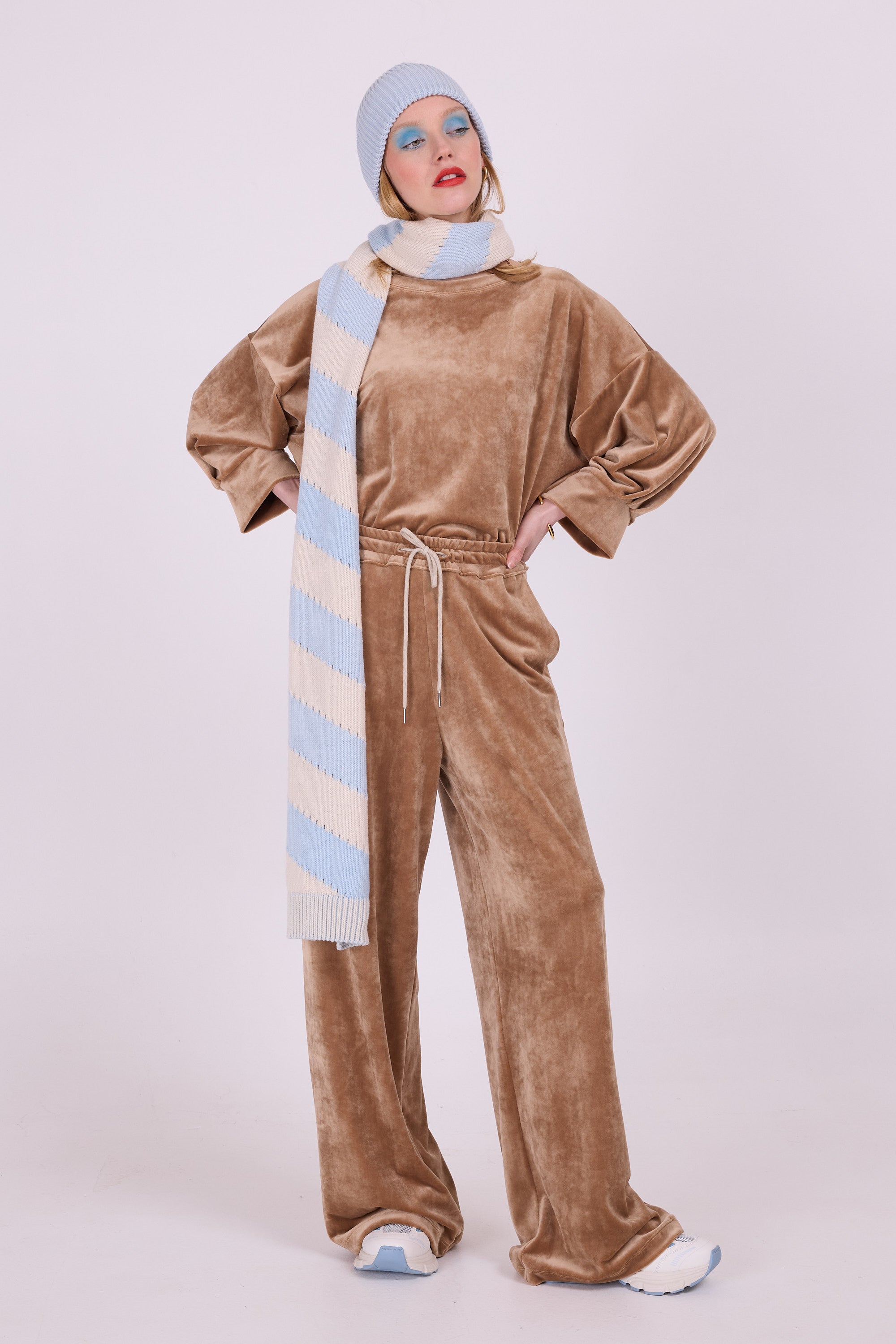 Bequeme Hose mit weitem Bein, elastischem Bund und Taillenkordelzug. Es ist aus seidig weichem Samt gefertigt und so gemütlich und schön, dass Sie es Tag und Nacht tragen möchten.