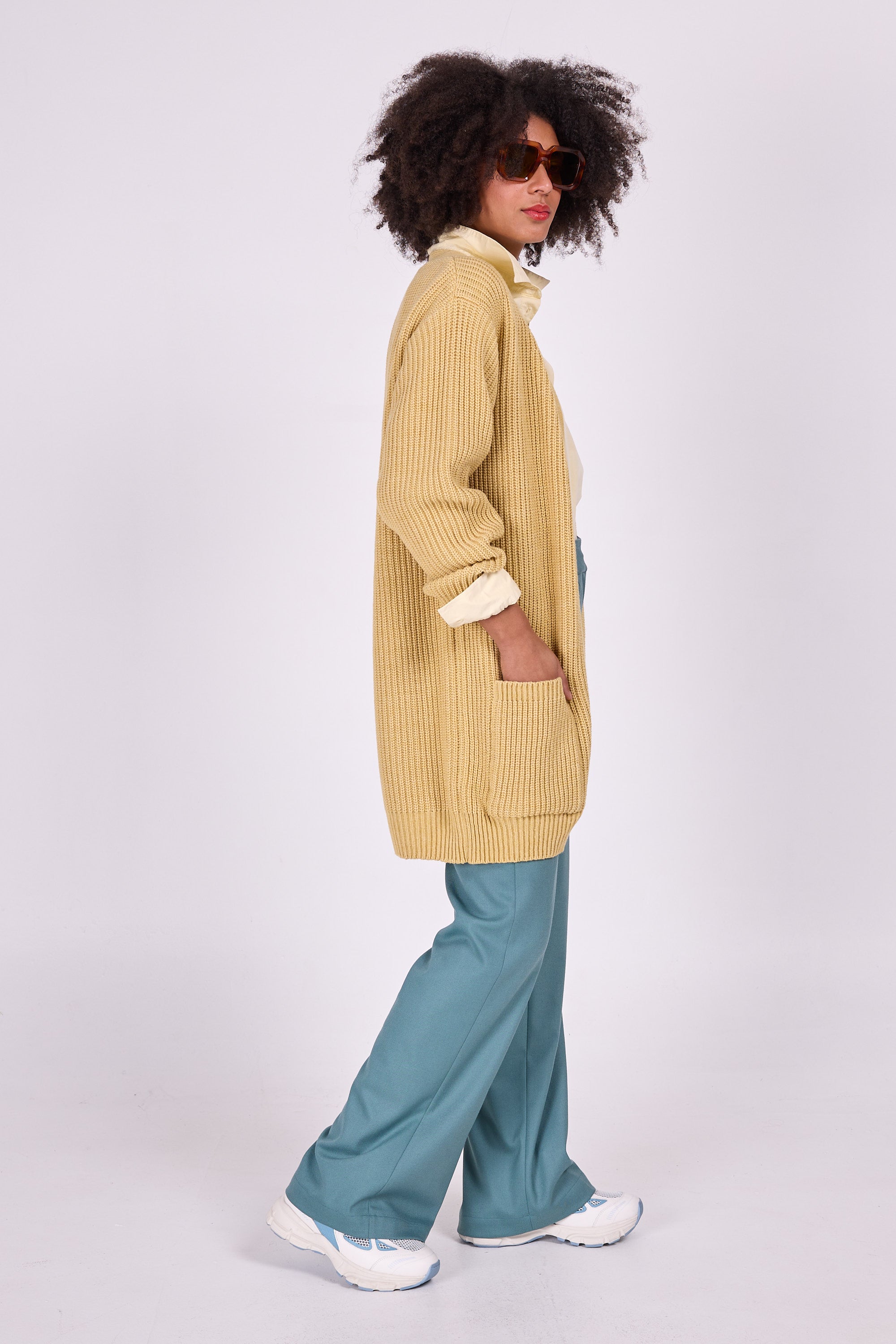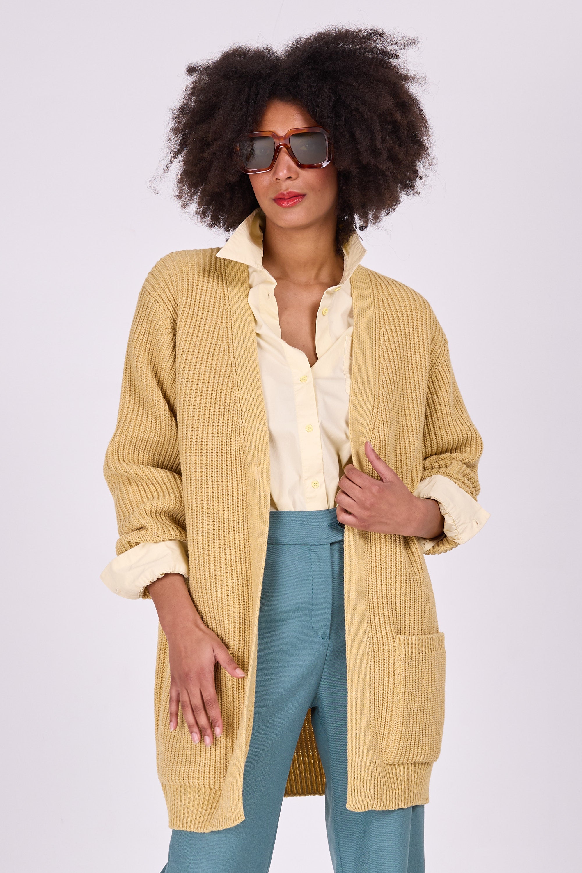 Lange Wollstrickjacke in Bananengelb von Willemstad