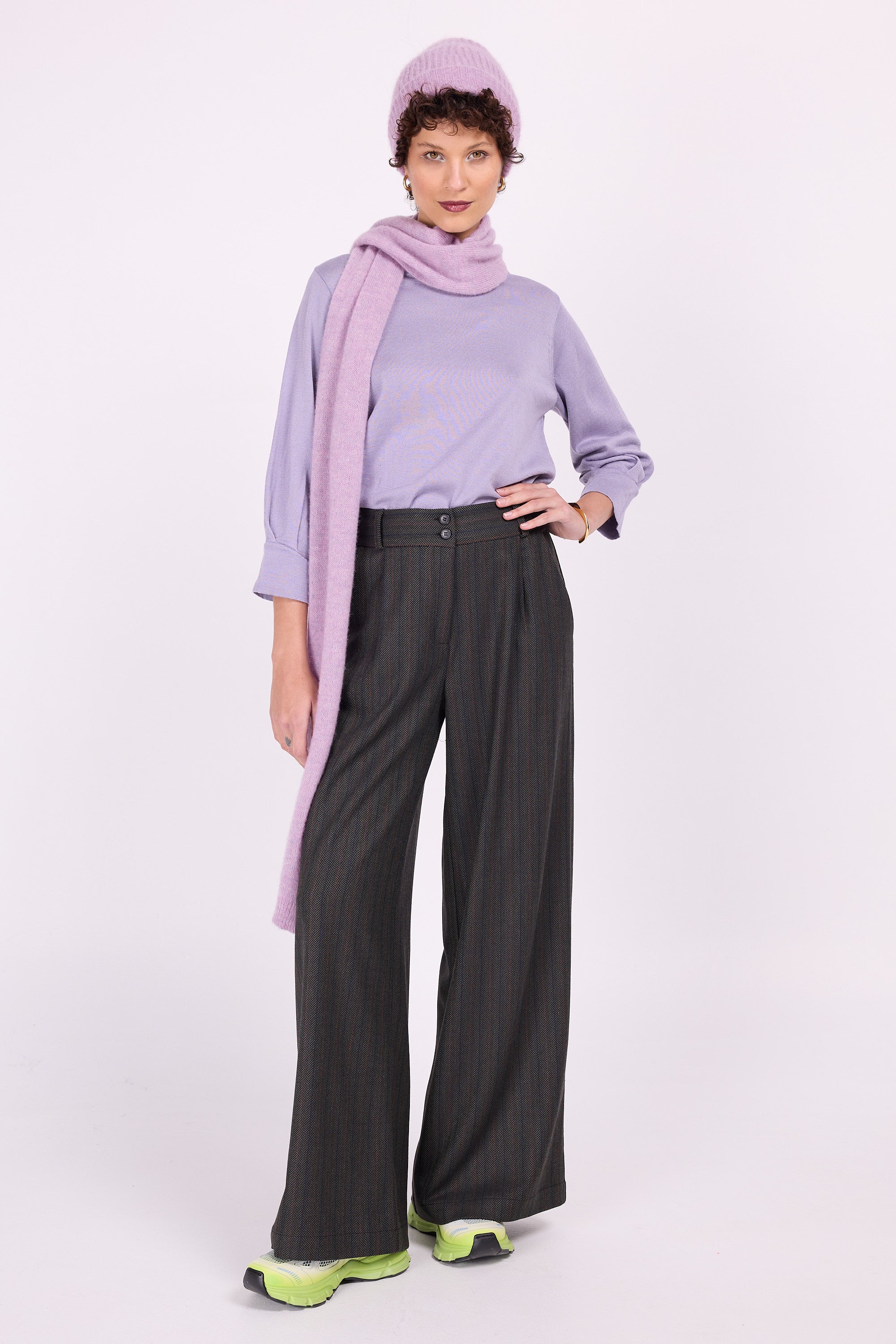 Stilvoll weite Beine, eine hohe Taille und dezente Bügelfalten verleihen dieser Hose einen femininen Charakter mit Pep. Seit Jahren ein Bestseller. Neben den vielen Unifarben gibt es ihn jetzt auch in drei Stoffen mit dezentem Muster. Diese Version hat ein Fischgrätenmuster und einen rosa Akzentstreifen.