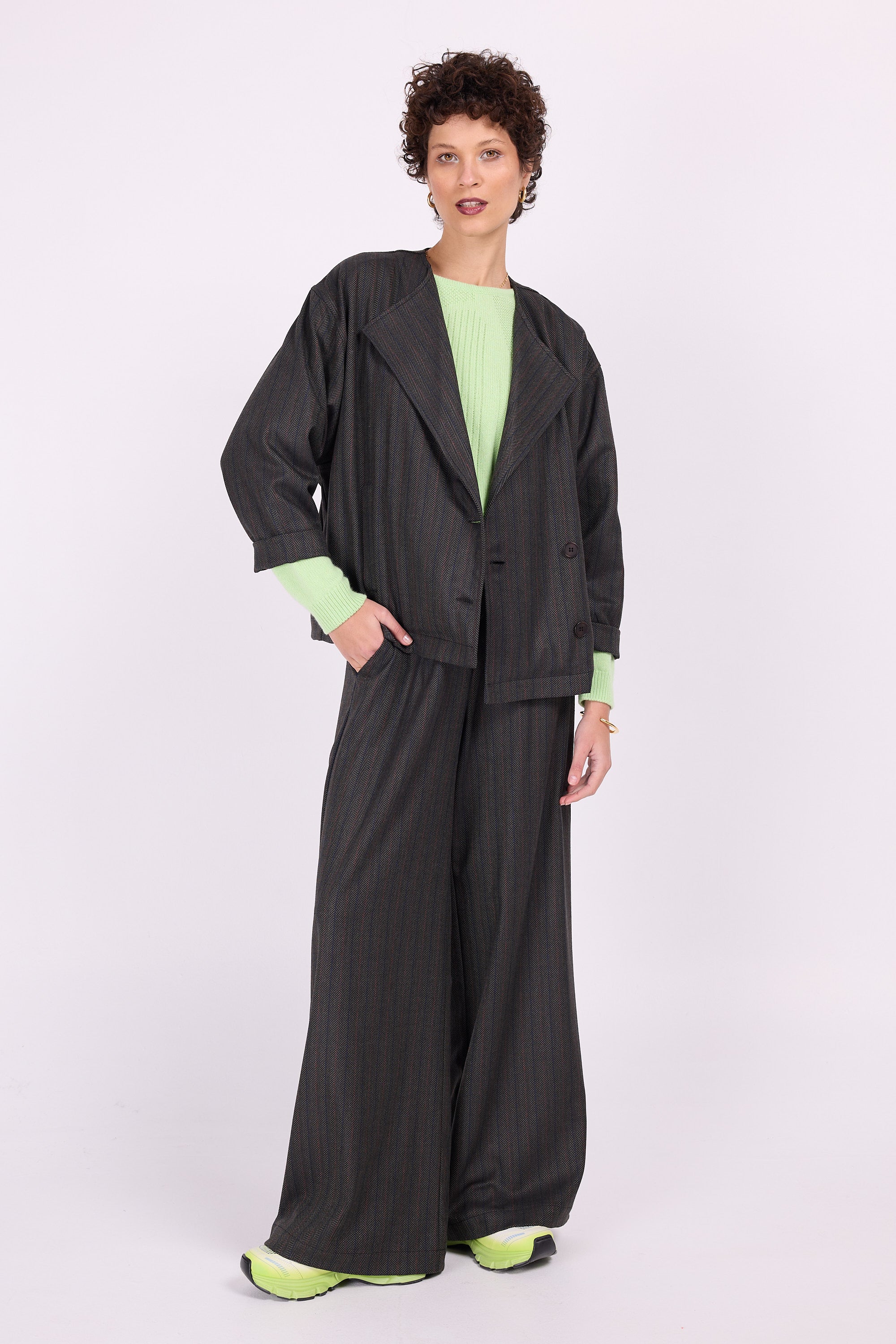 Zoëlla-Hose mit mehrfarbigem Fischgrätenmuster in Grau