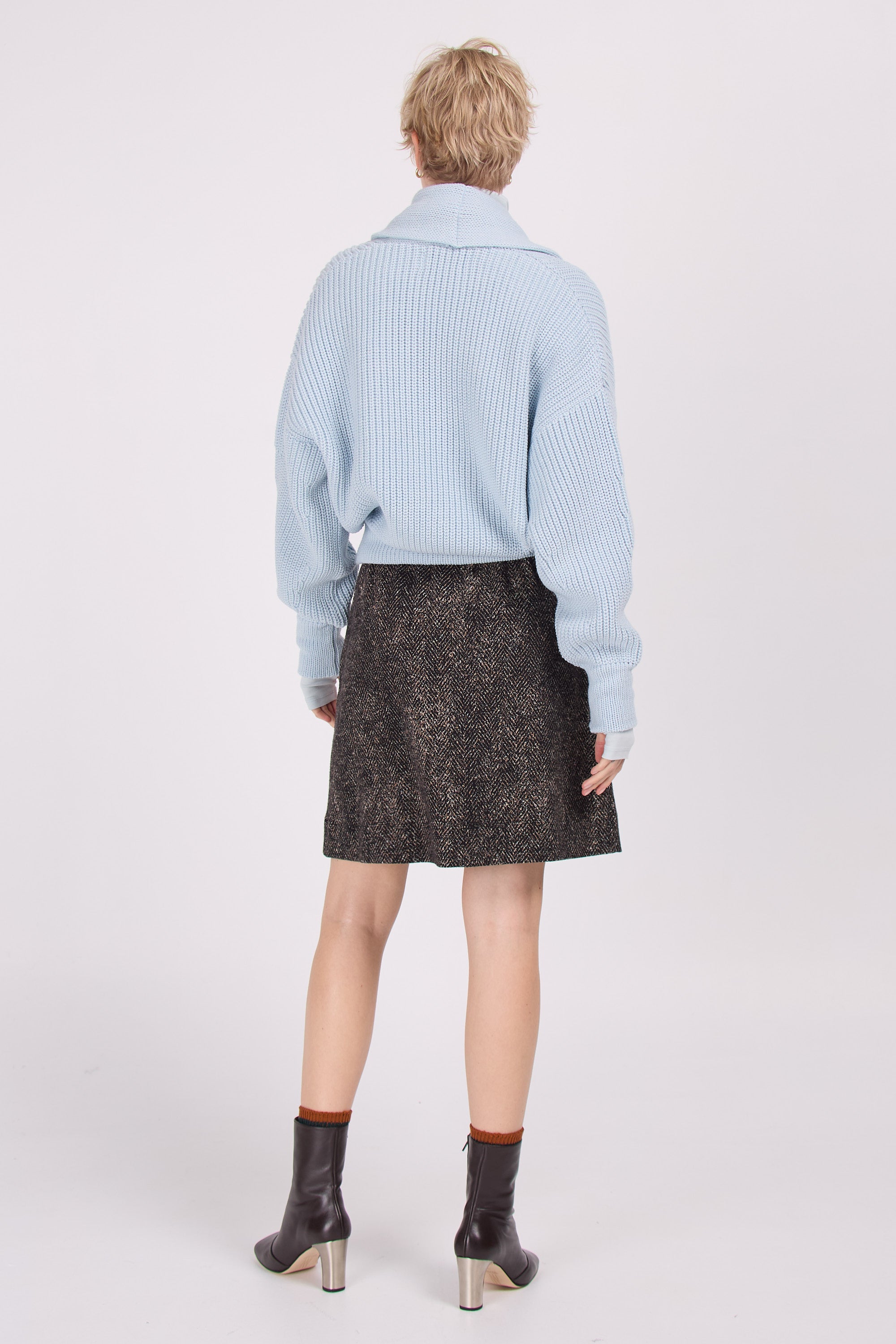 A-Linien-Rock mit elastischem Bund. Das klassische Fischgrätmuster bezeichnet steife Stoffe, doch der Schein trügt, denn es handelt sich um einen elastischen Stoff mit herrlichem Tragekomfort.