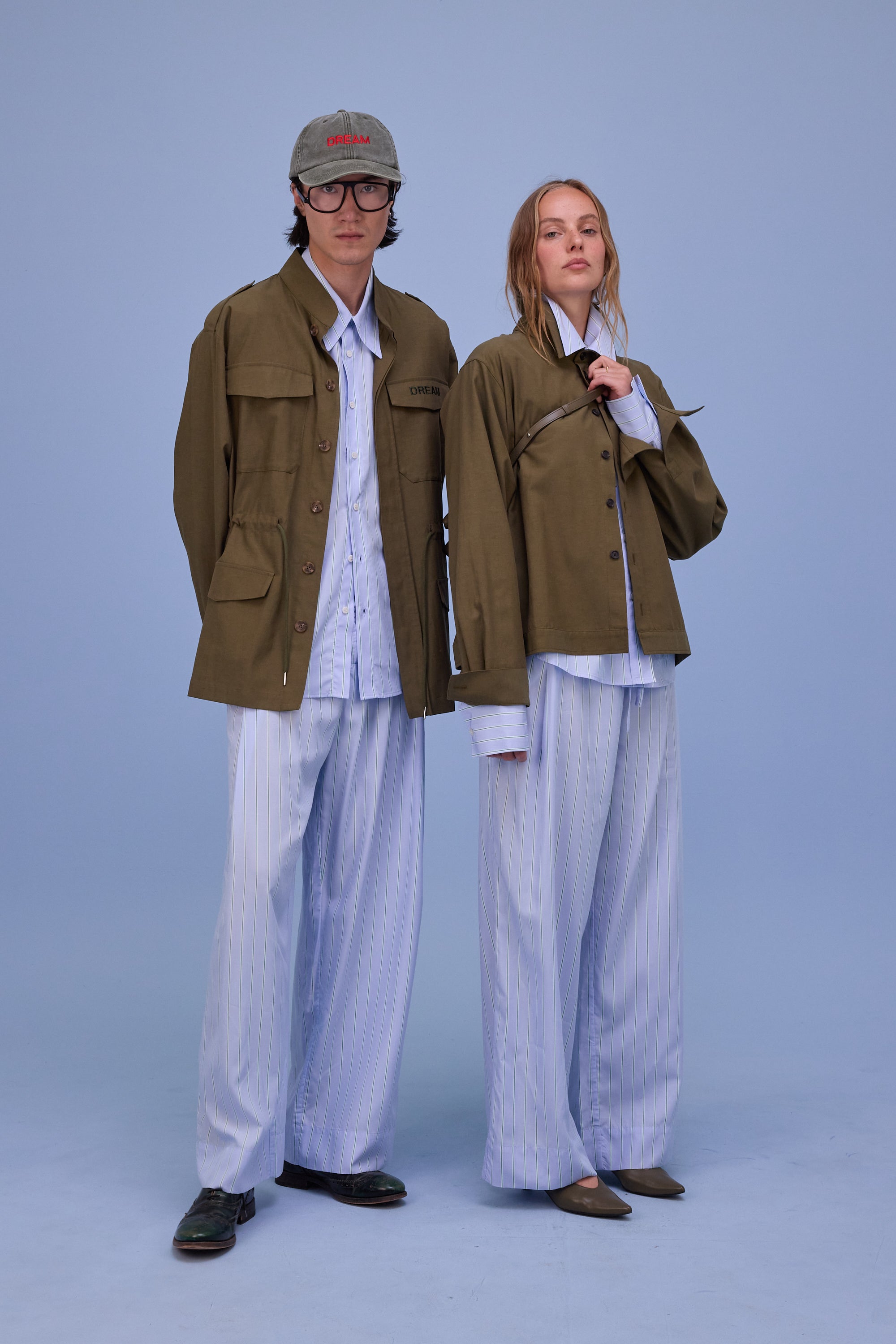 Reguläre Passform. Das Model ist 1,77 m groß und trägt Größe M für eine lockerere Passform. Das männliche Model trägt ebenfalls Größe M und ist 1,88 m groß. Volle Länge, Seitenlänge (unterhalb des Taillenbunds) in Größe S: 104 cm.