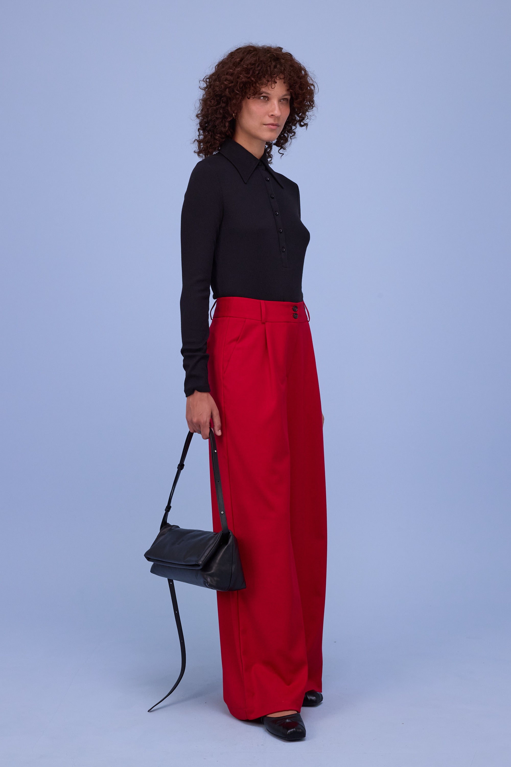 Anpassendes Poloshirt mit ausgeprägtem Spitzkragen aus Rippbaumwollmischung. Durch die lange Knopfleiste ist ein tiefer V-Ausschnitt möglich.