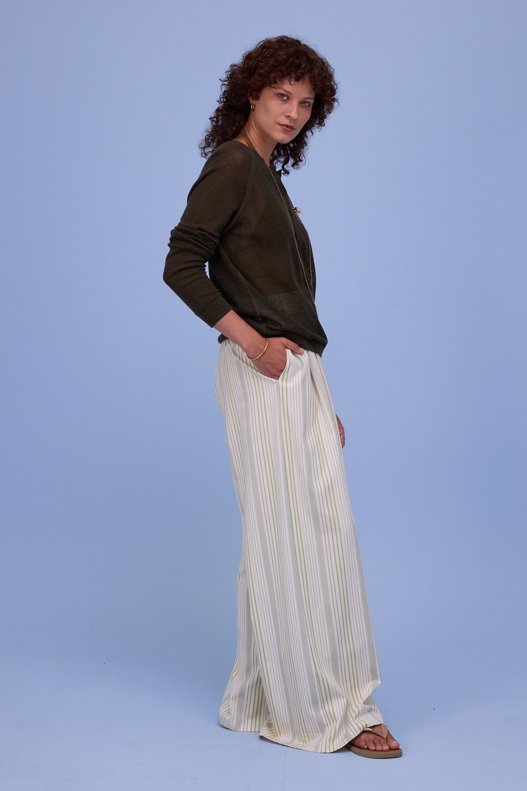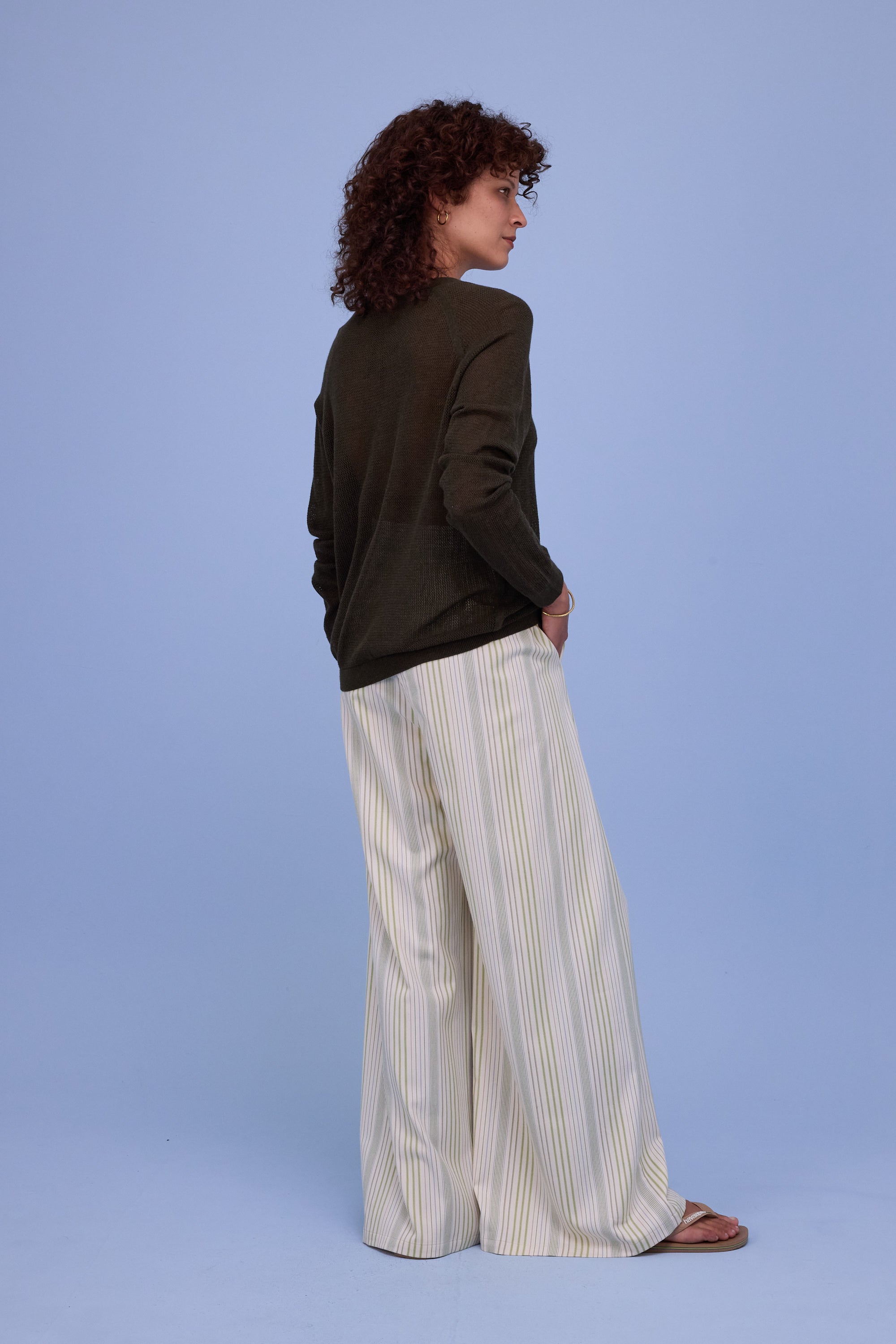Halbtransparenter, locker fallender Pullover aus Häkelarbeit in einer superweichen Baumwollmischung mit Seide. Nach Belieben mit einem Top darunter tragen.