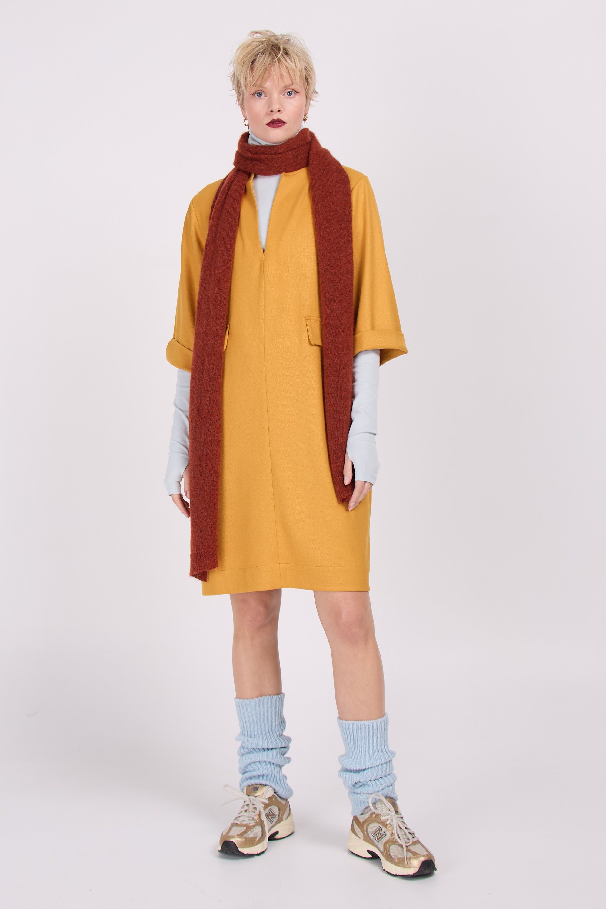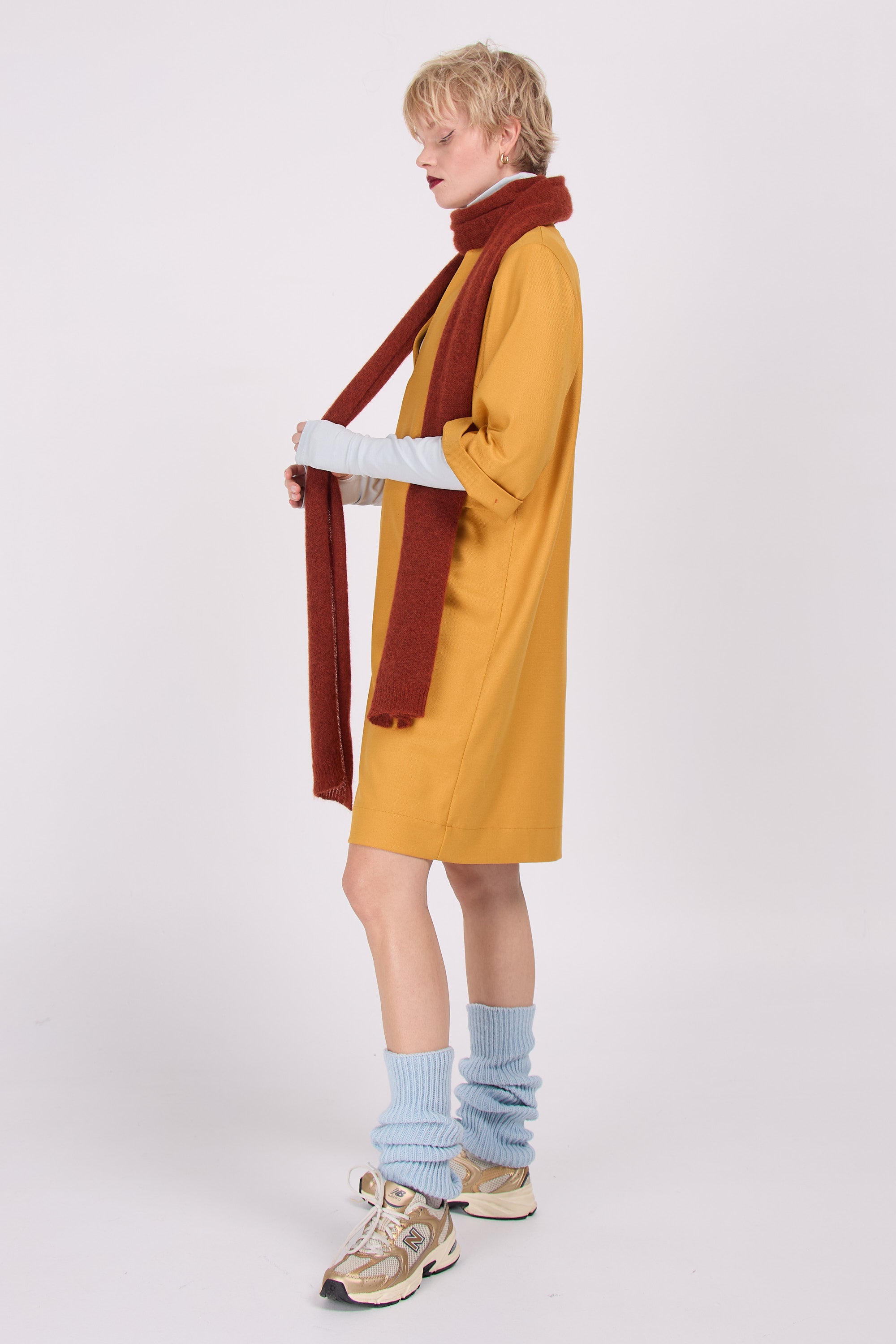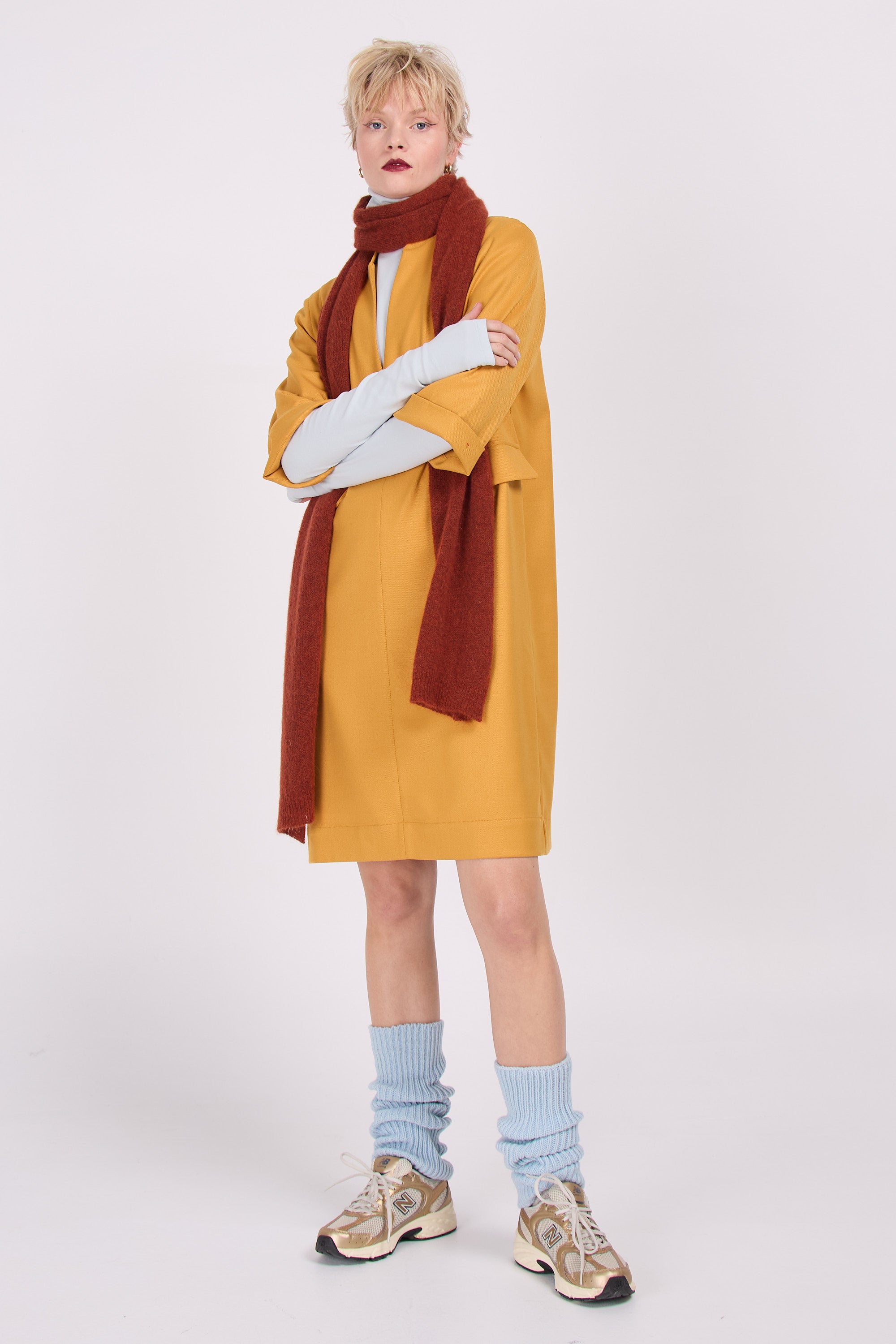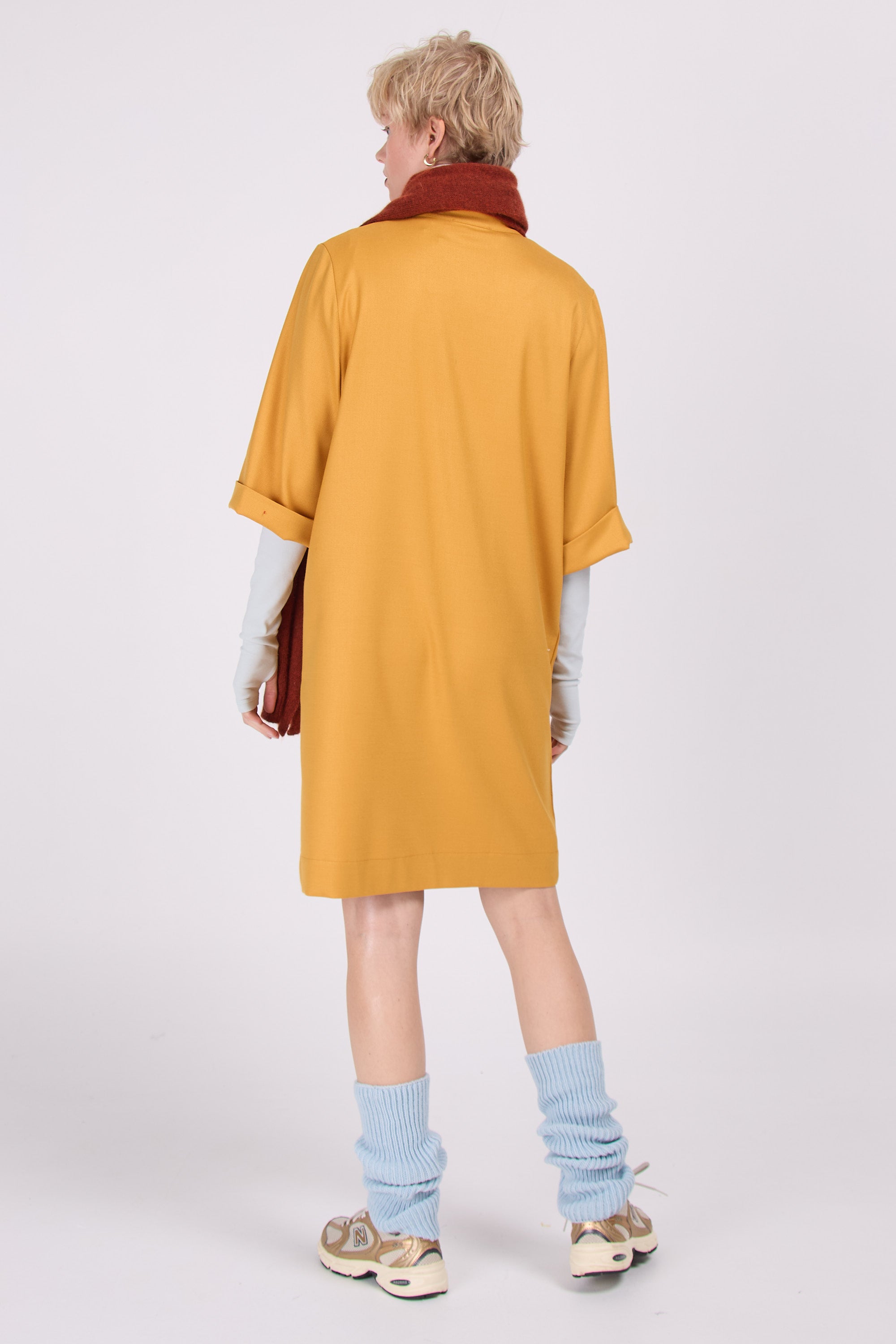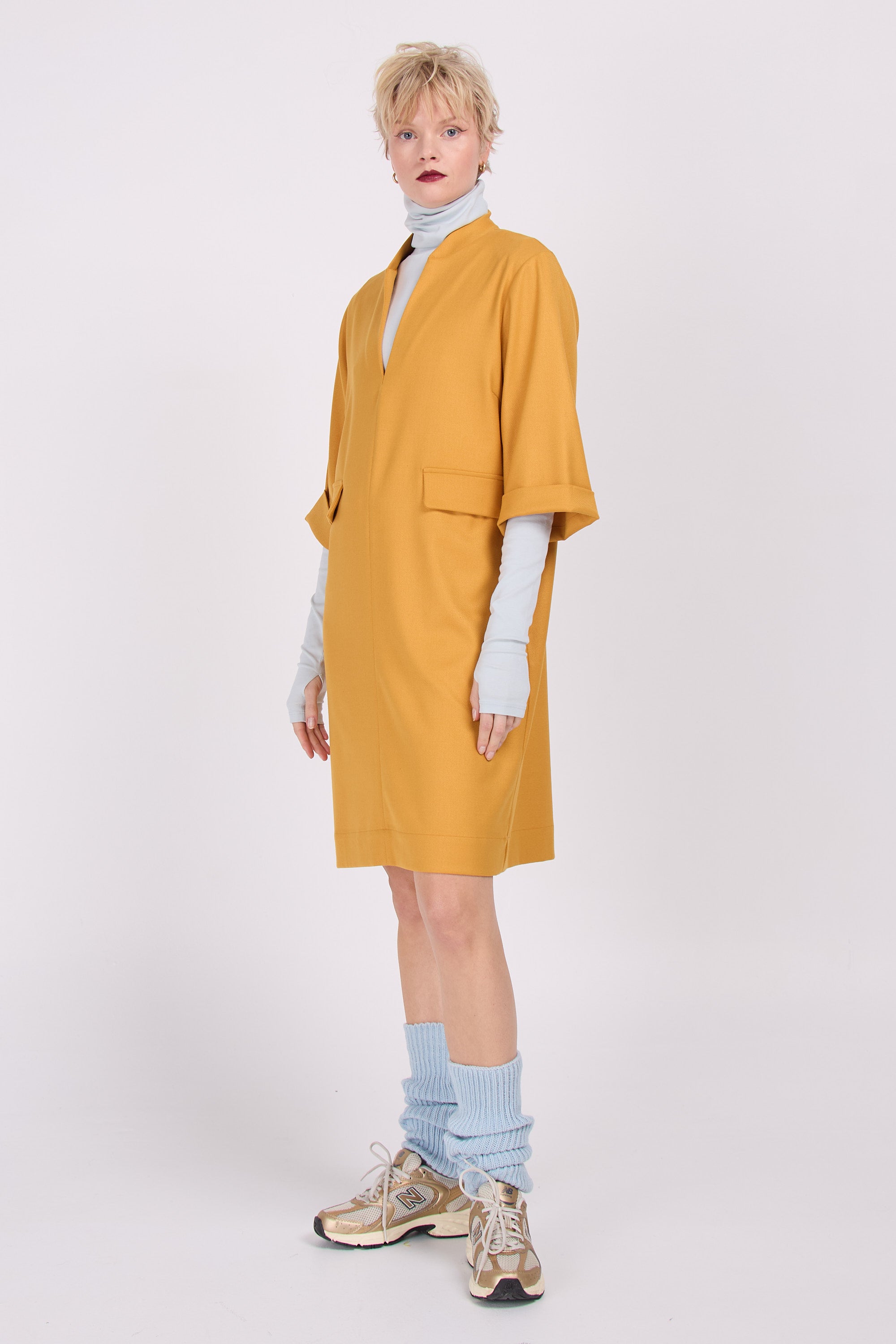 Elegantes Kleid mit Stehkragen aus Twill und in drei Farben erhältlich. Die aufgesetzten (falschen) Taschen verleihen diesem bequemen, geraden Kleid eine optische Taillierung.