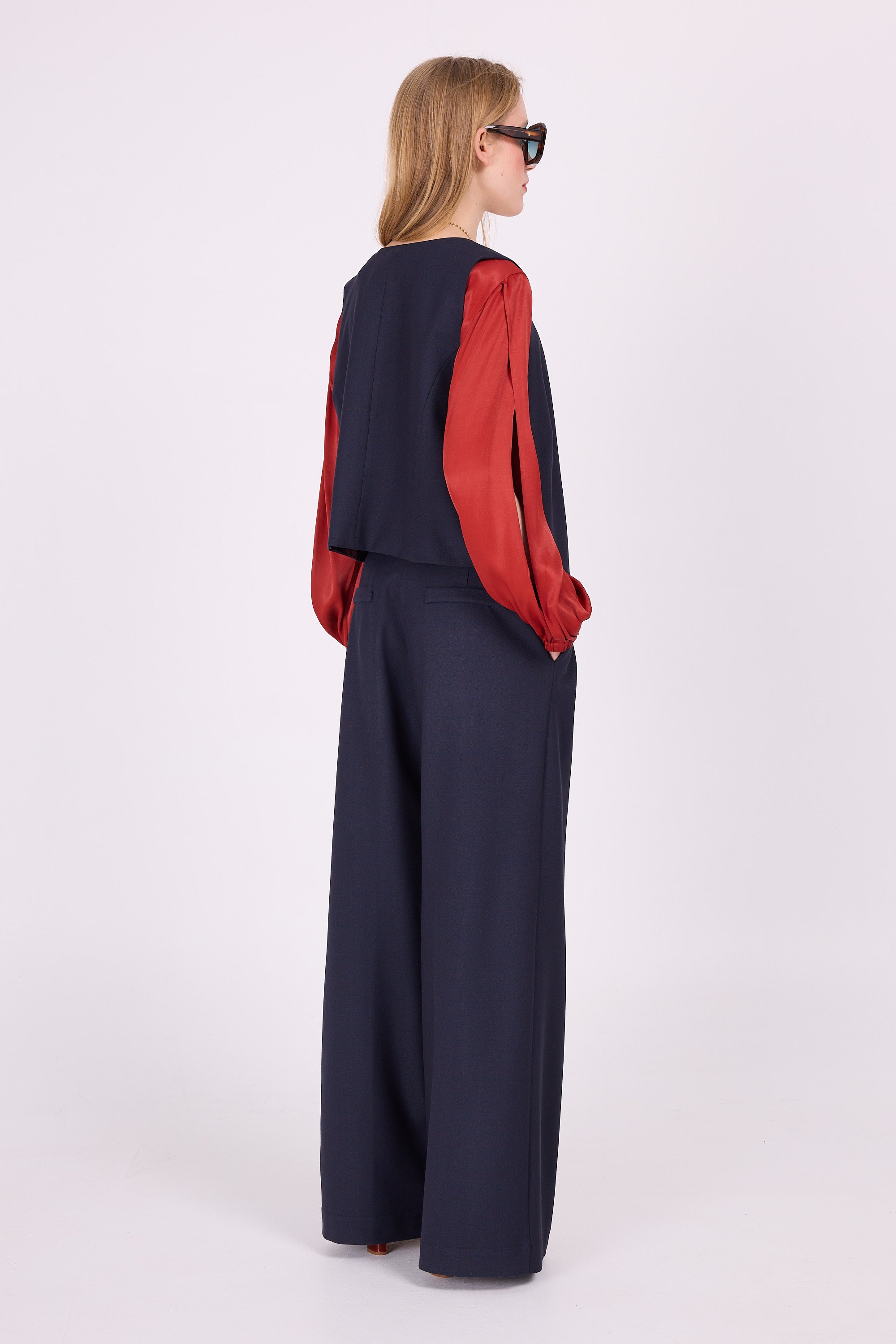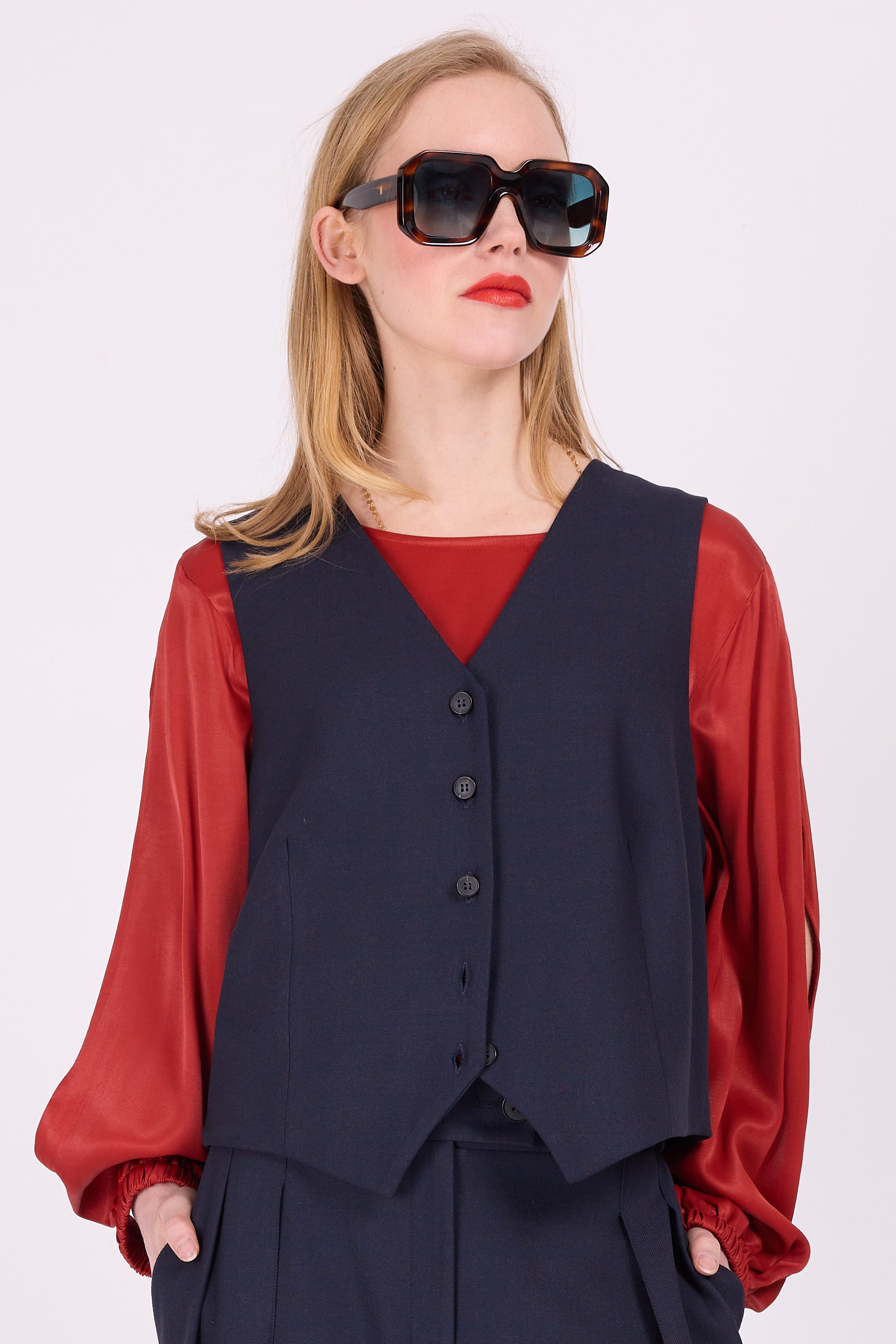 Aus der Herrenmode übernommen, aber ach so kraftvoll in einer femininen Silhouette. Tragen Sie es scheinbar lässig über einem feinen Strickpullover oder machen Sie den Look zu Ihrem eigenen, indem Sie es geschlossen auf der nackten Haut in Kombination mit einer Anzughose aus dem gleichen Stoff tragen.