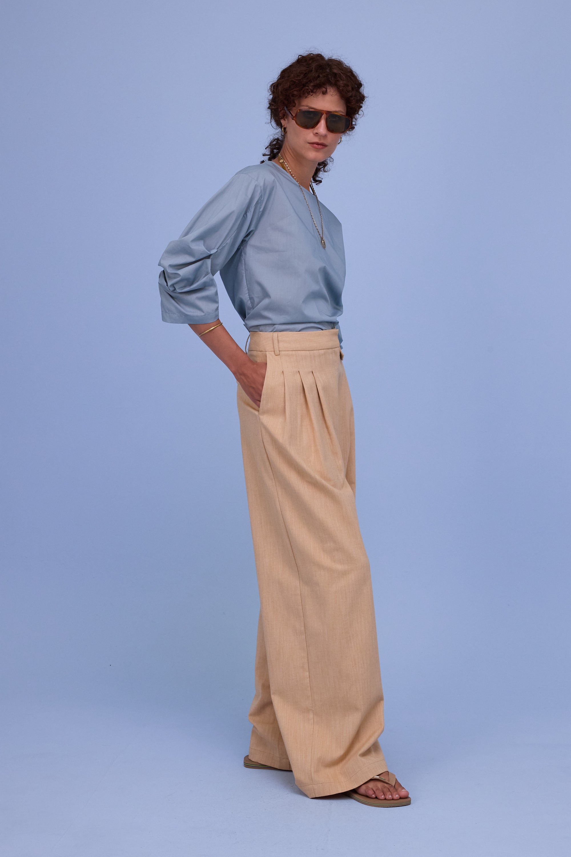 Kurze Bluse aus luftiger Baumwollpopeline. Die Fältchen am Ärmel sorgen für einen skulpturalen Effekt. Camille ist seit Jahren ein Favorit in der Kollektion.