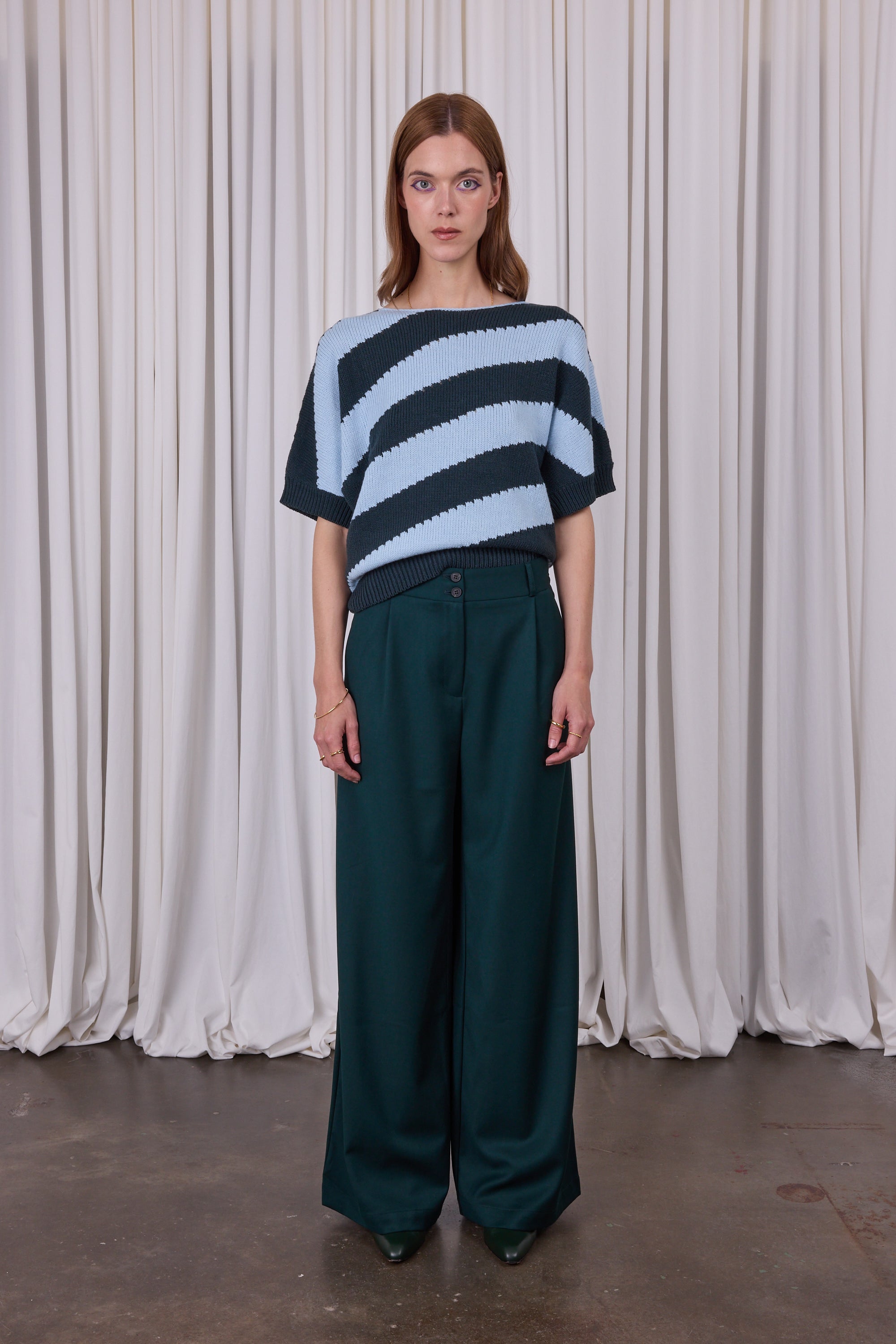 Die Streifen des Wallis-Pullovers verlaufen nicht vertikal, nicht horizontal, sondern verspielt kreuz und quer. In Belgien aus einer Merinowollmischung gestrickt und in drei verschiedenen Farbmischungen erhältlich. Welches wird Ihr Favorit sein?