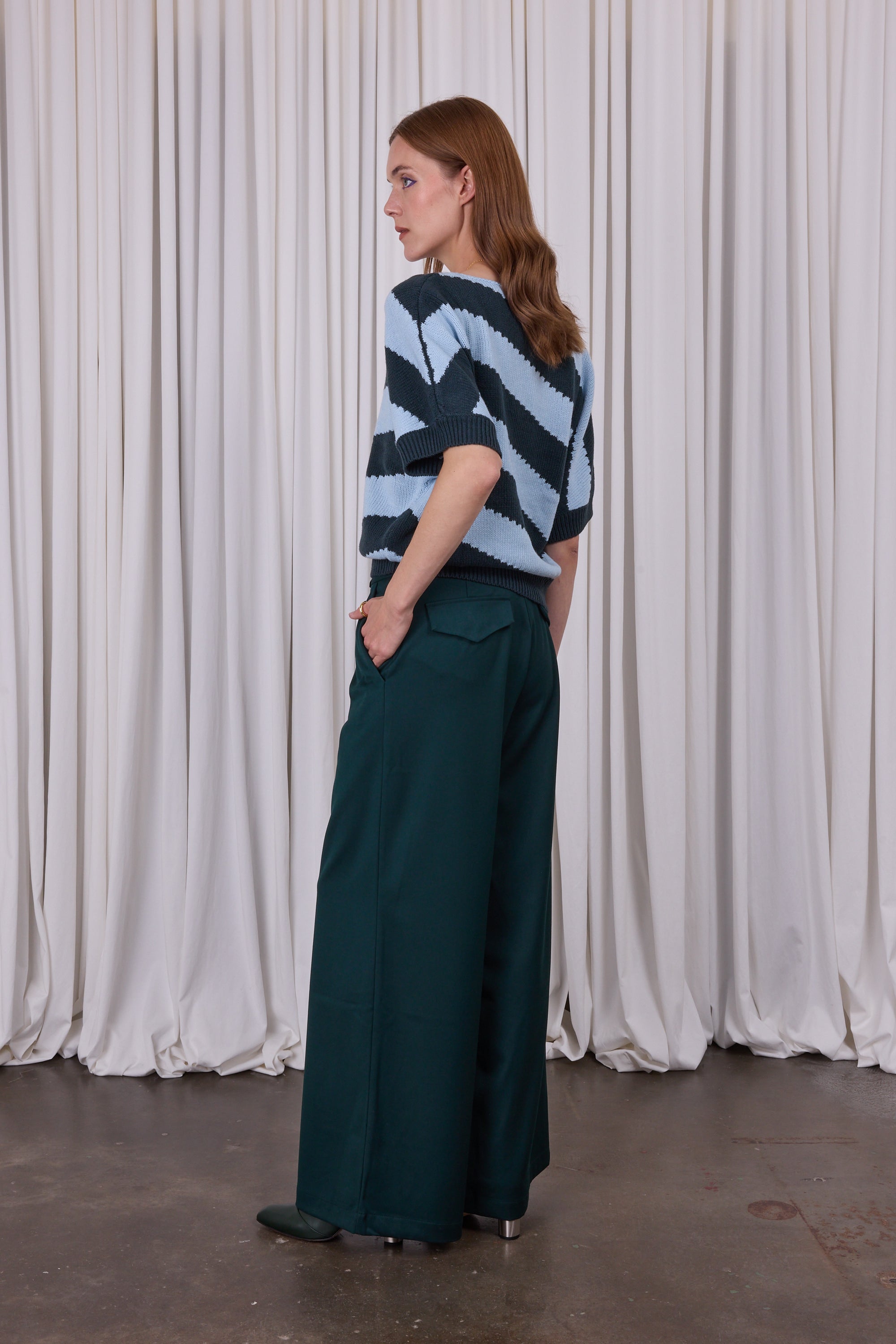 Wallis Pine grün-hellblauer zweifarbiger Pullover