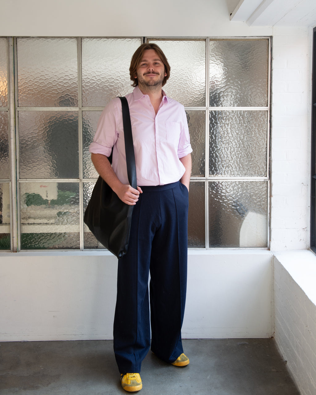 Lion is wearing the Egon pinstripe trousers size XXL in combination with a shirt from the men's collection in L. The soft lilac colour of the shirt is a shade that looks remarkably good on men, mark our words !