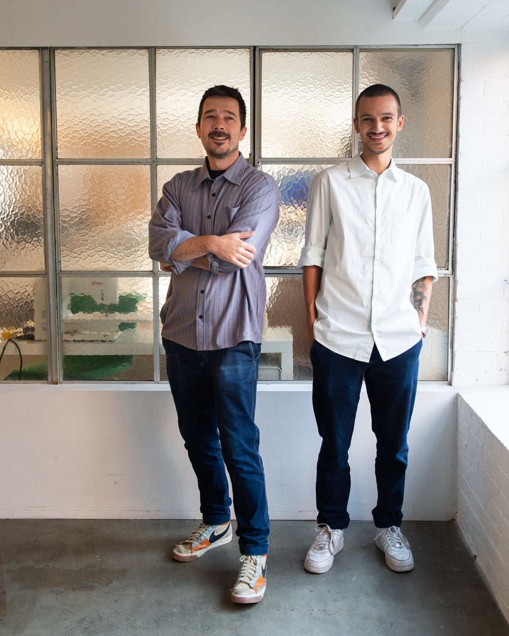 Sander & Yasin work in the warehouse, for them clothing should be practical above all. They surprised their colleagues with their choice of fashionable shirts. Yasin chose shirt Des in sky blue, Sander chose Elesto in a striped pattern. They both wear size S.