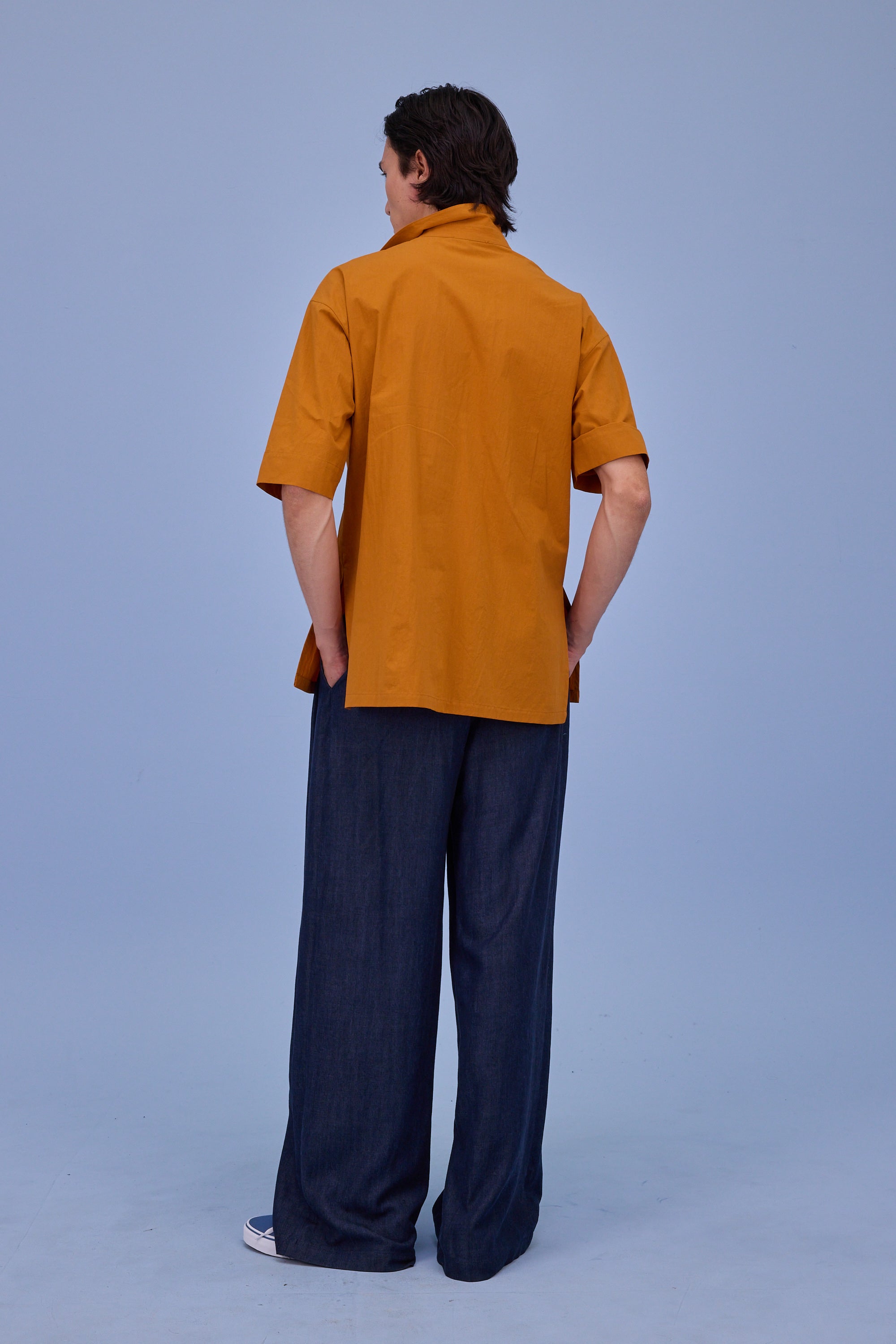 Made in 'crinkled poplin', cotton with a natural wrinkle.