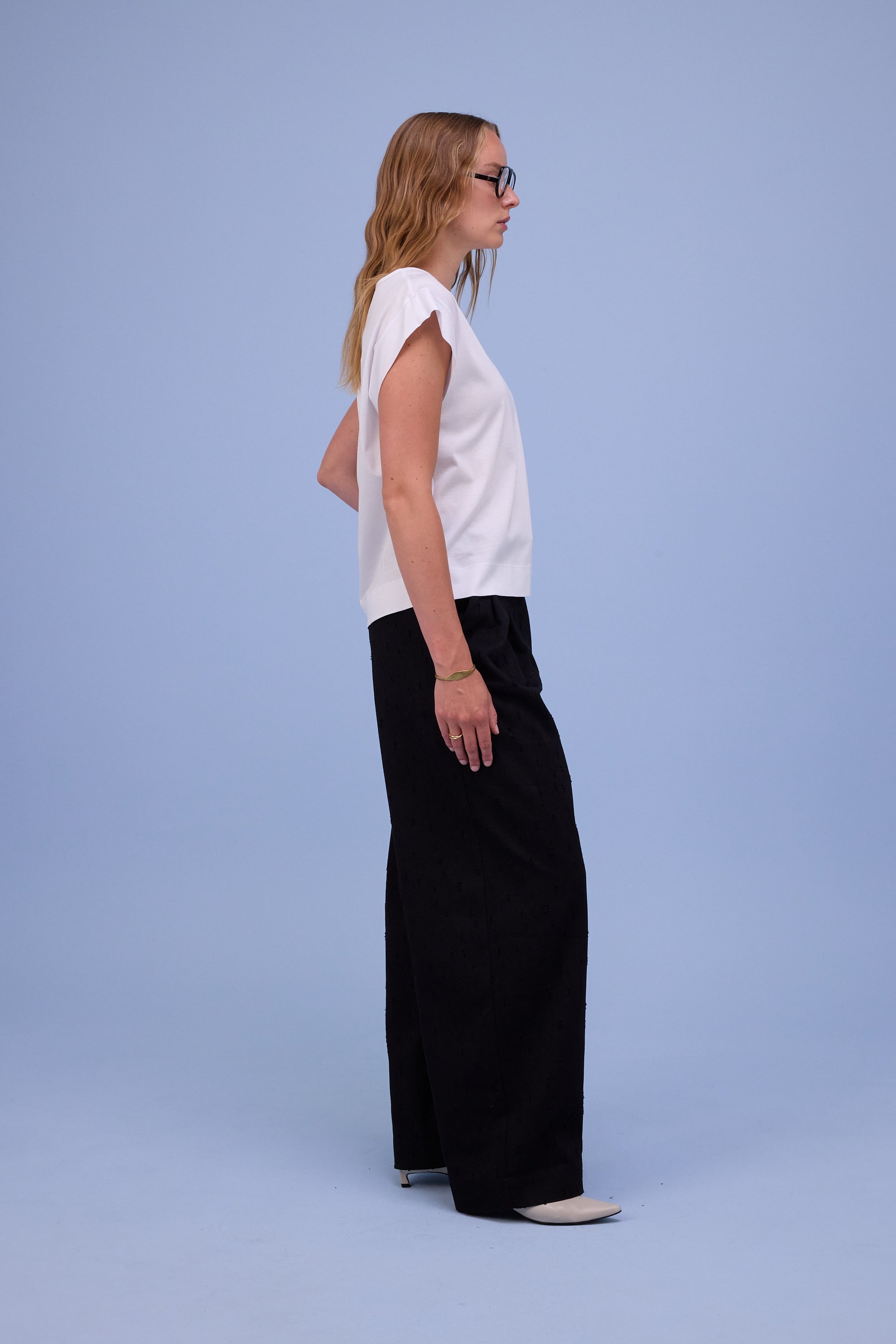 T-shirt with short, cropped sleeves in cotton-modal jersey. This straight-cut model with a boat neckline has become a new favourite basic over the past few summers.