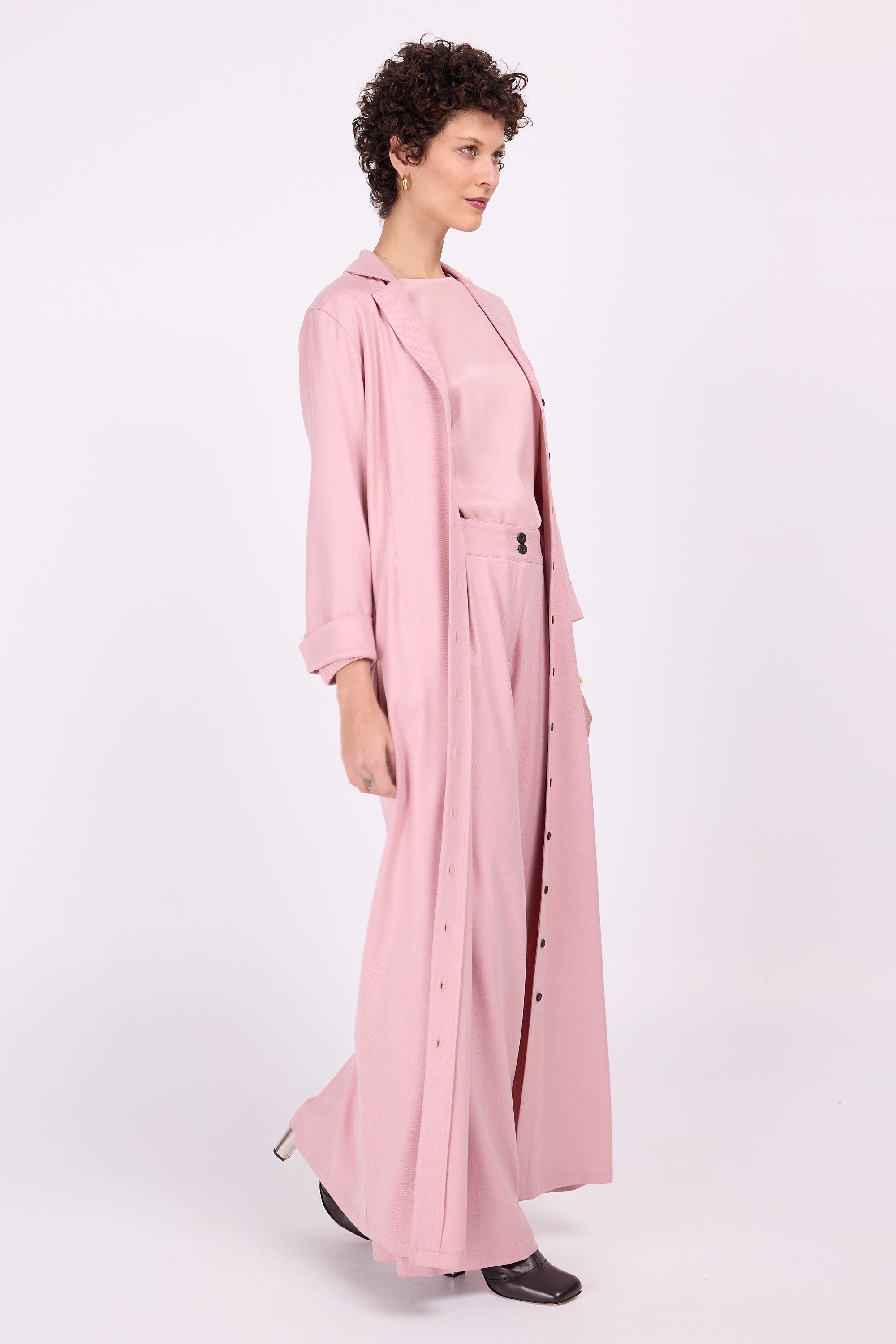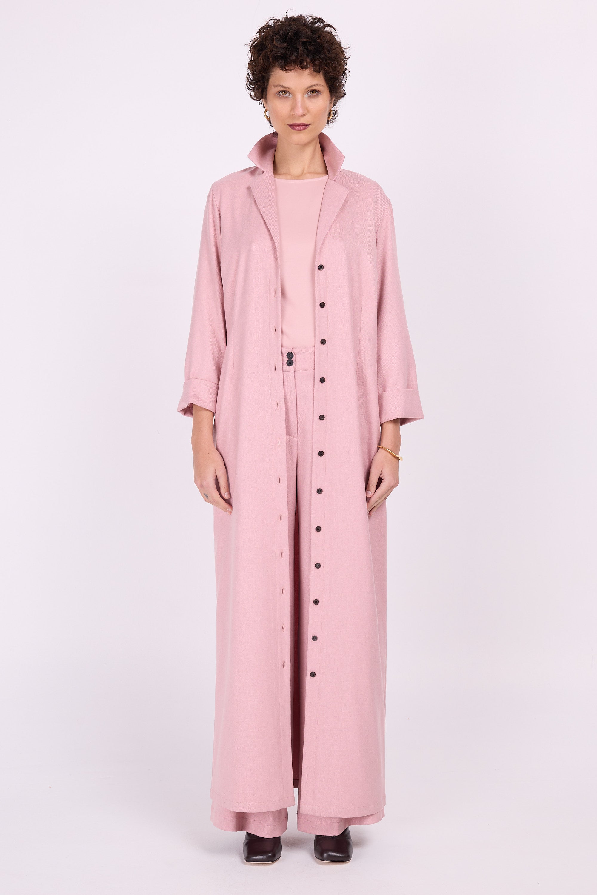 Is roze je lievelingskleur? Dan kan je niet om deze outfit heen! Enkellange gecentreerde hemdsjurk die ook perfect als overjurk in te zetten is.