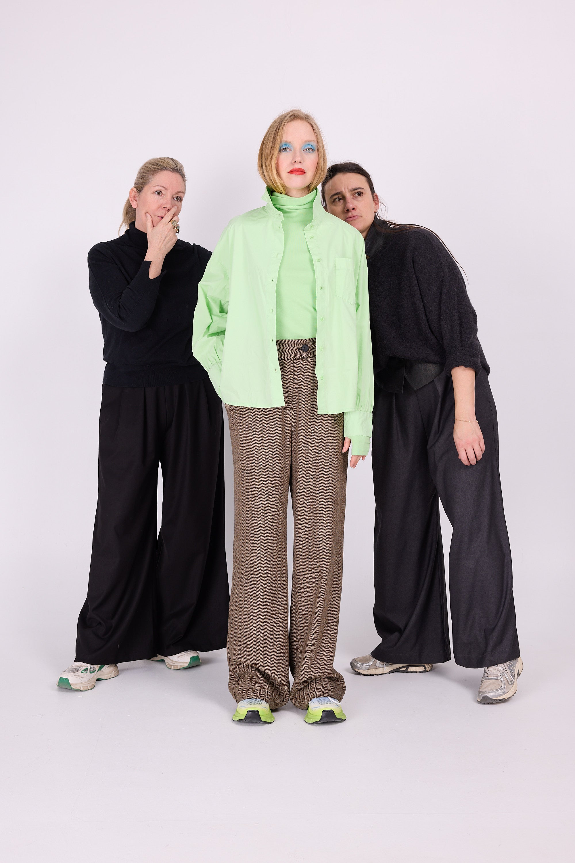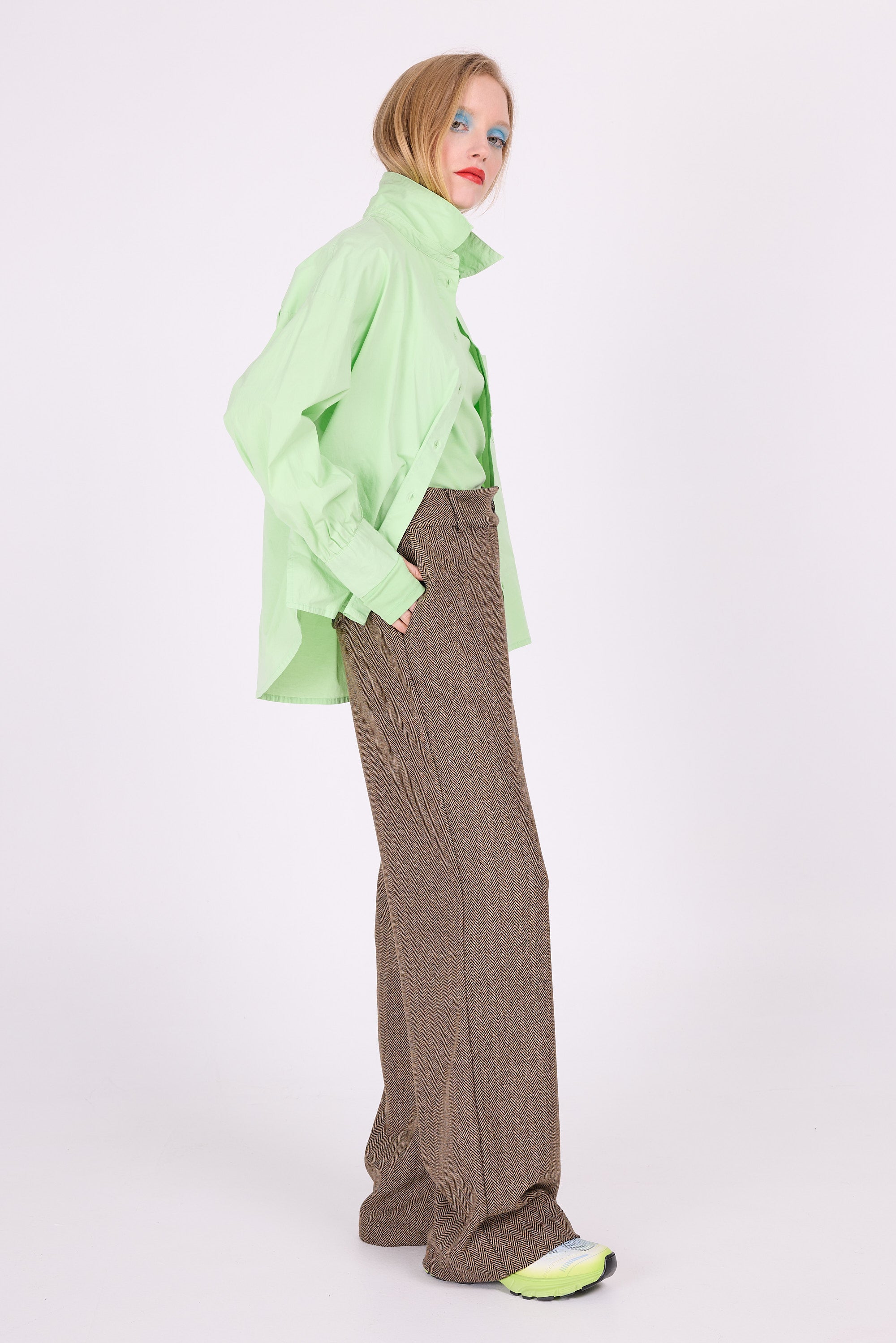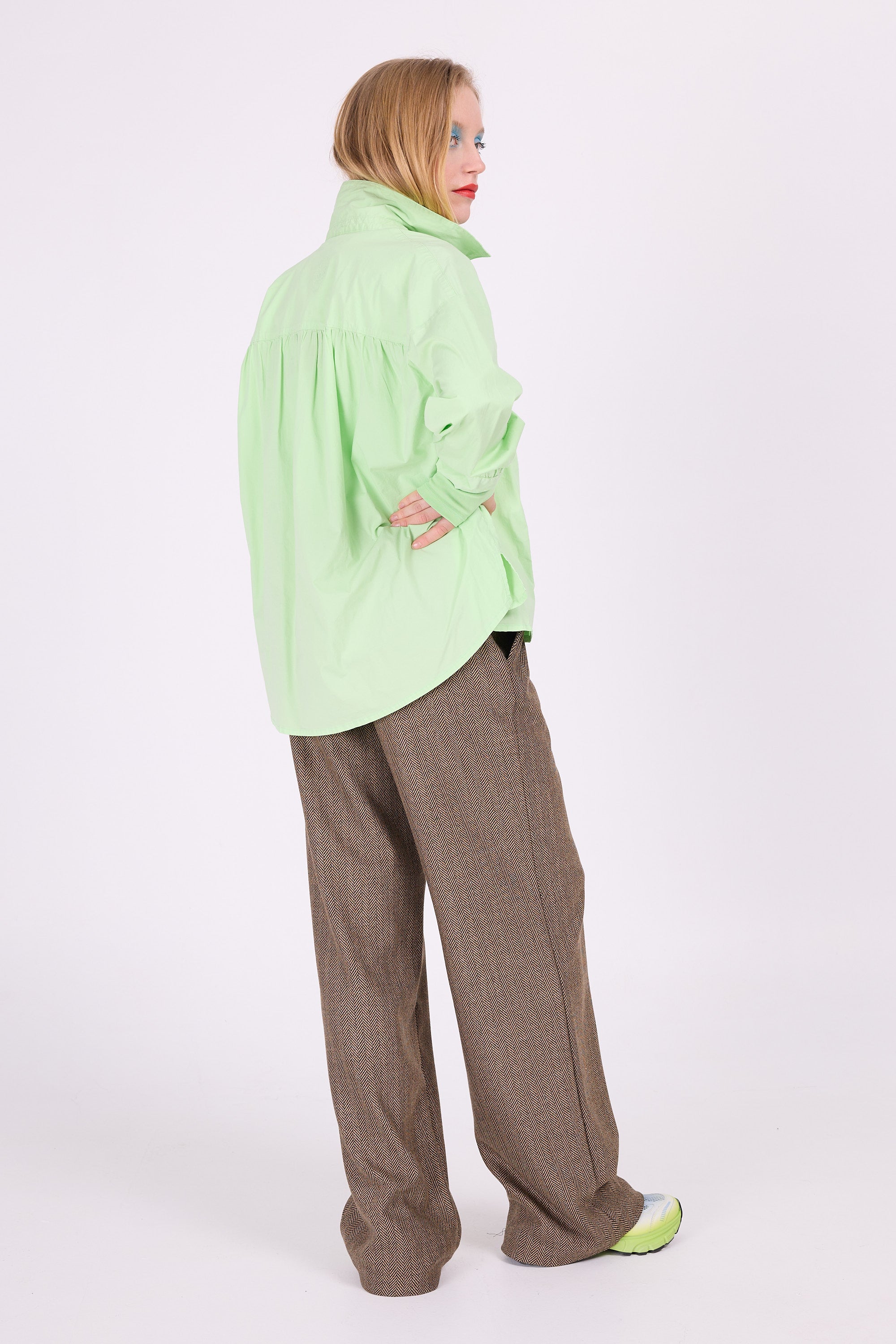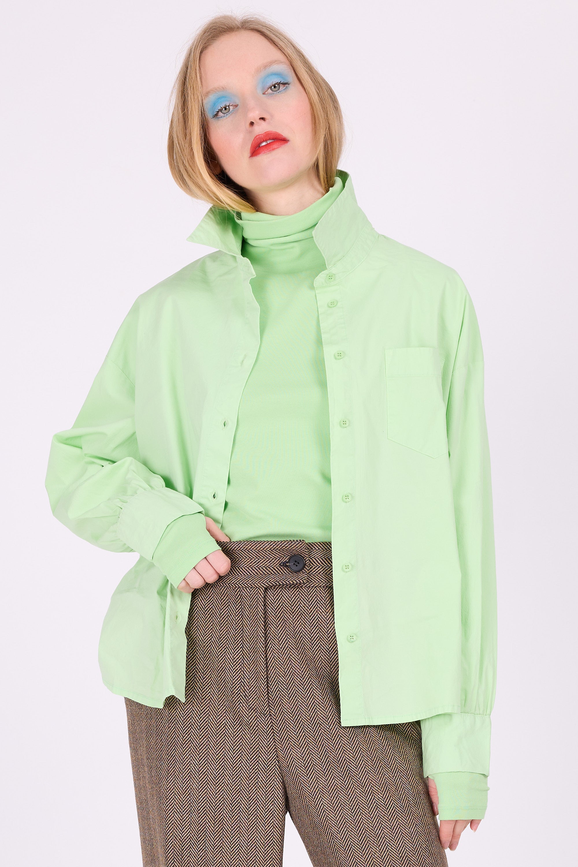 Breedvallend hemd met afhangende schouder, pofmouwen en fronsing op de rug. Gemaakt in luchtige stretchkatoen popeline.