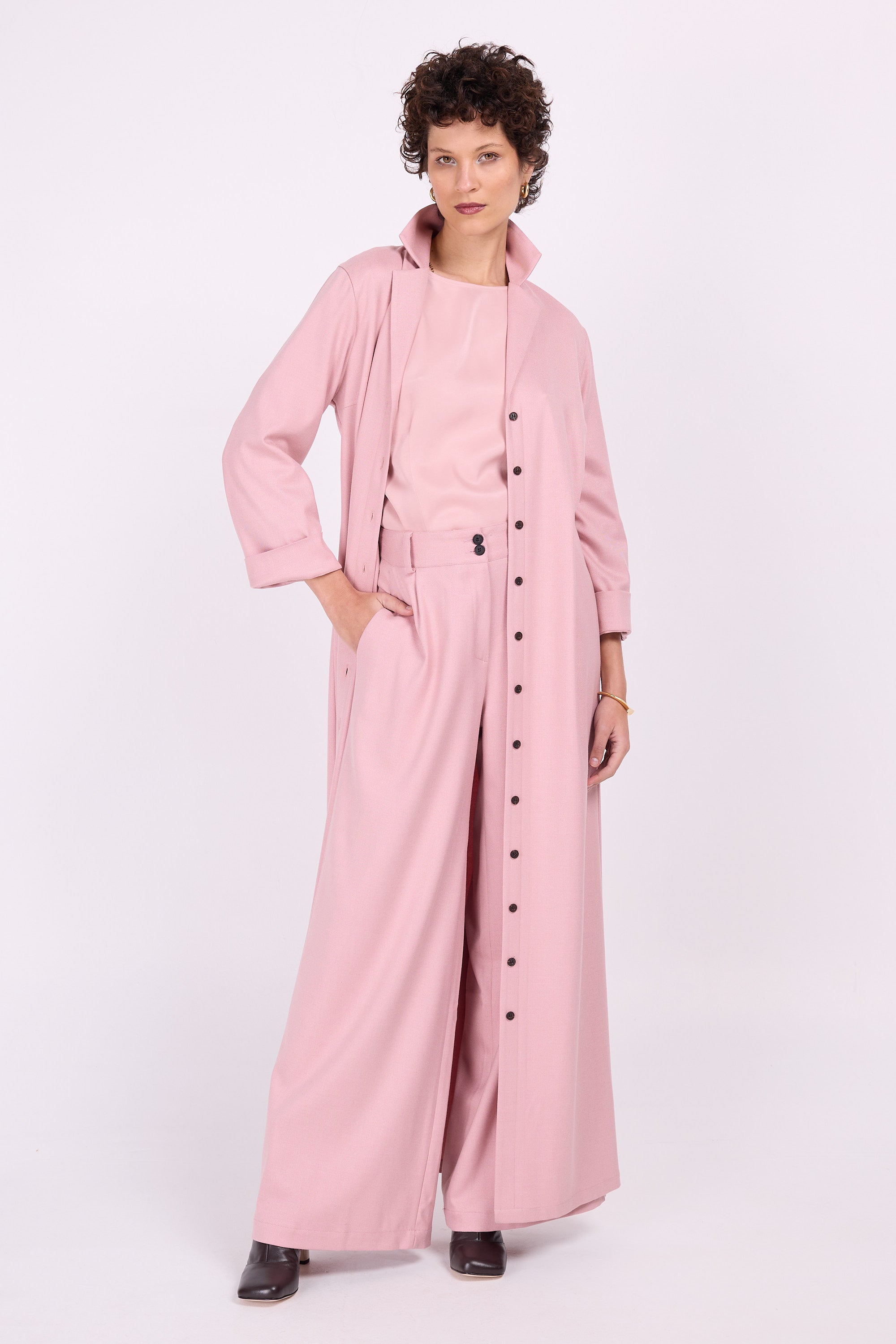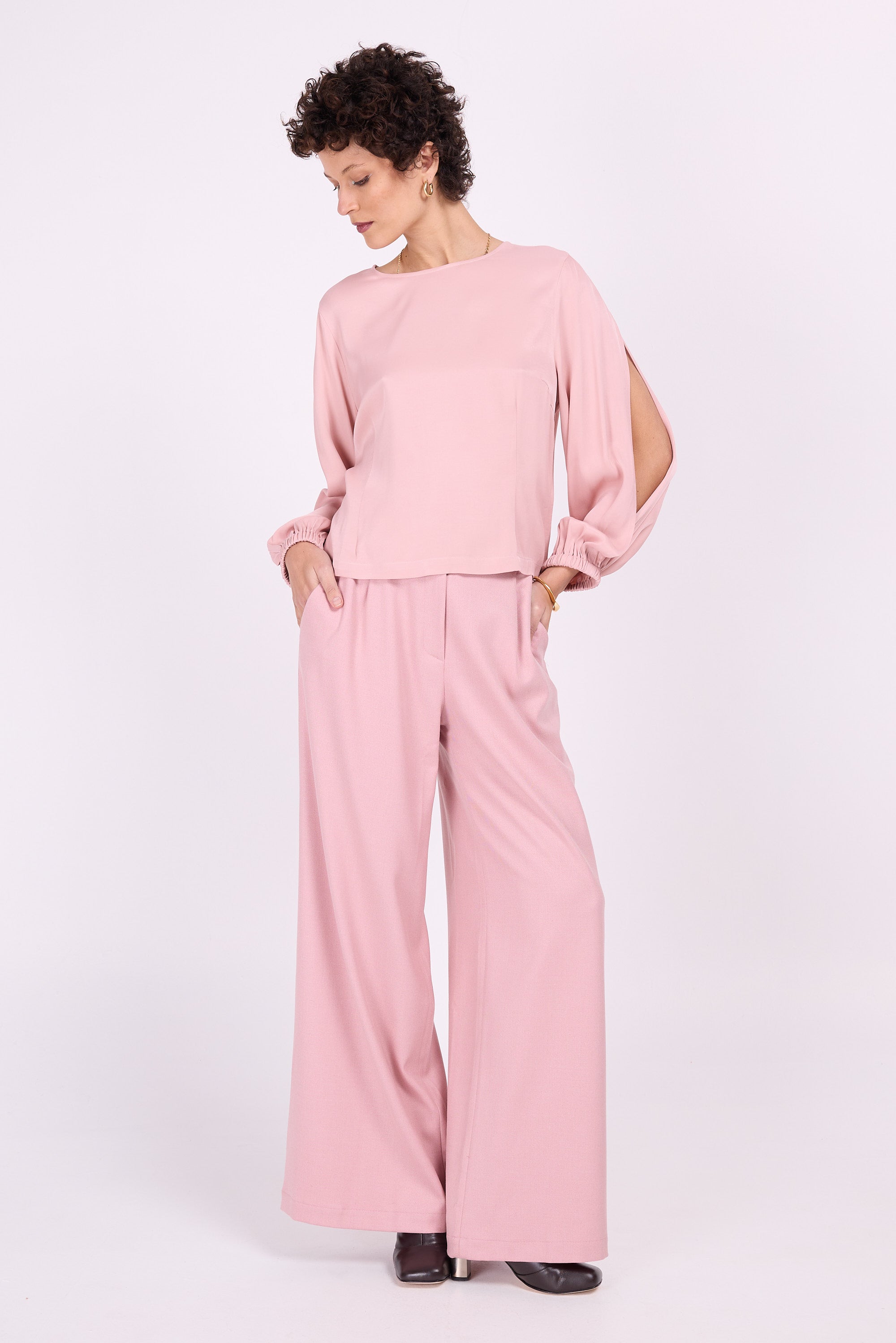 Stijlvolle brede pijpen, een hoge taille en subtiele bandplooien geven deze broek een vrouwelijk karakter met pit. Al jaren een bestseller. Dit seizoen komt ze in een waaier aan kleuren in soepelvallende twill.