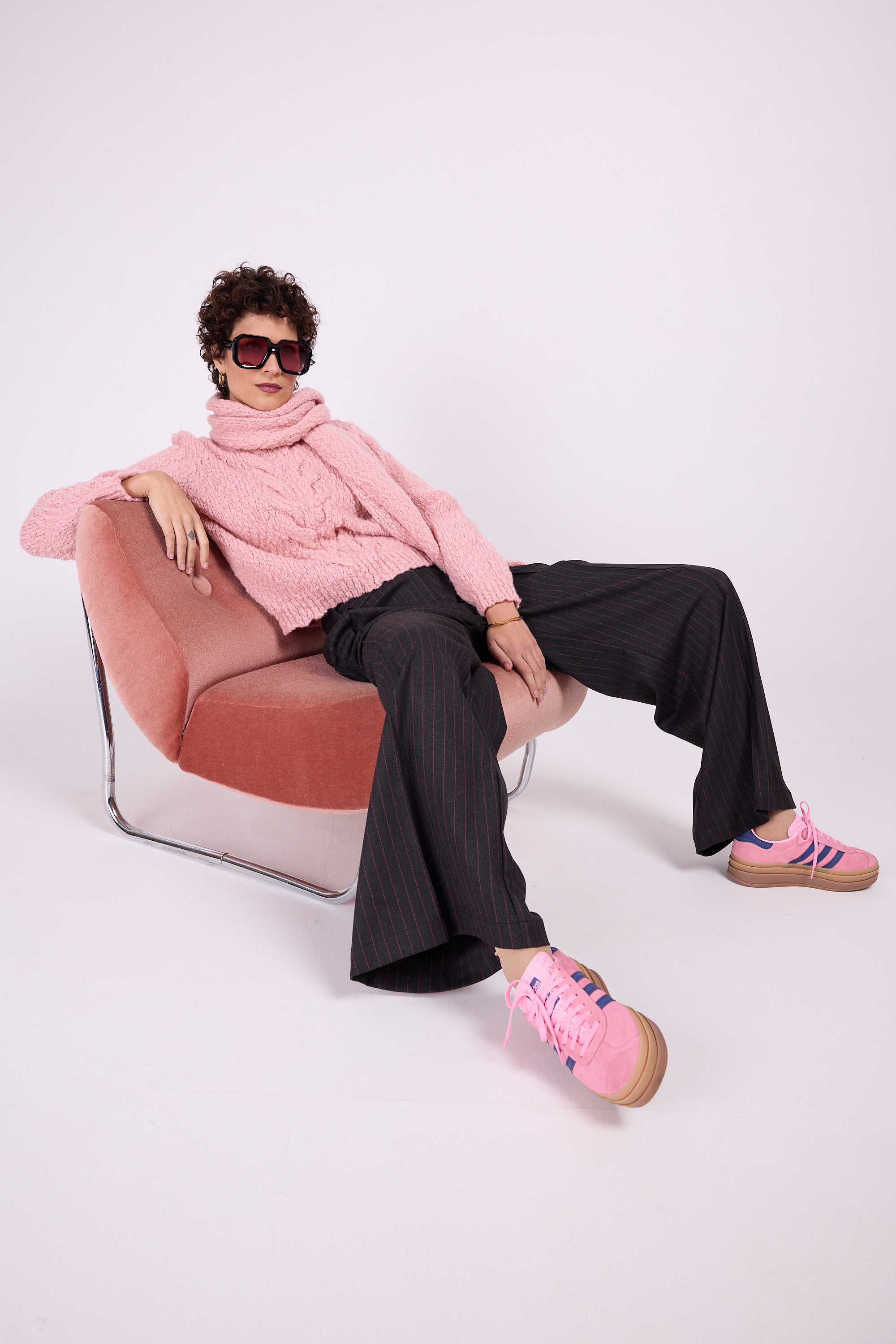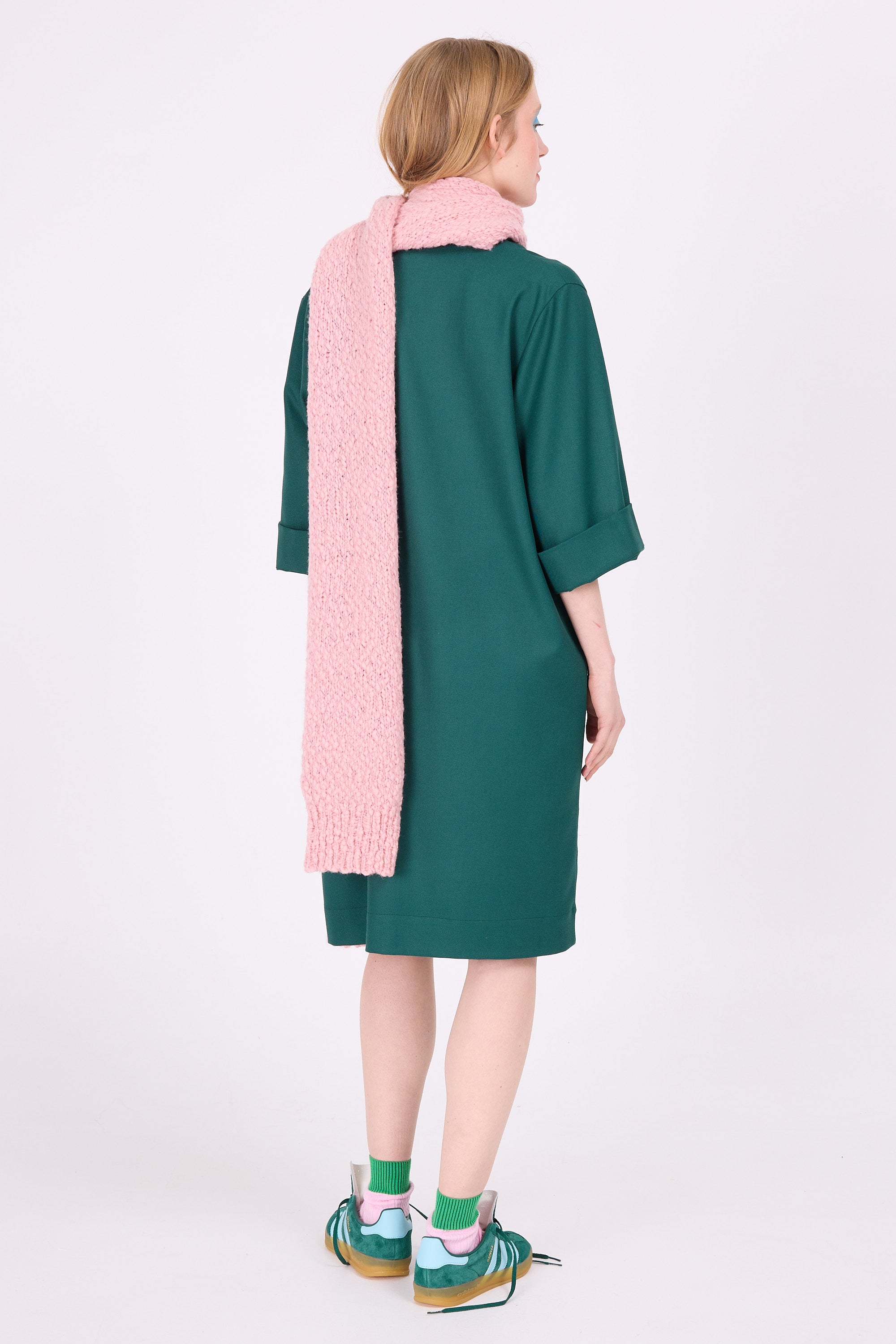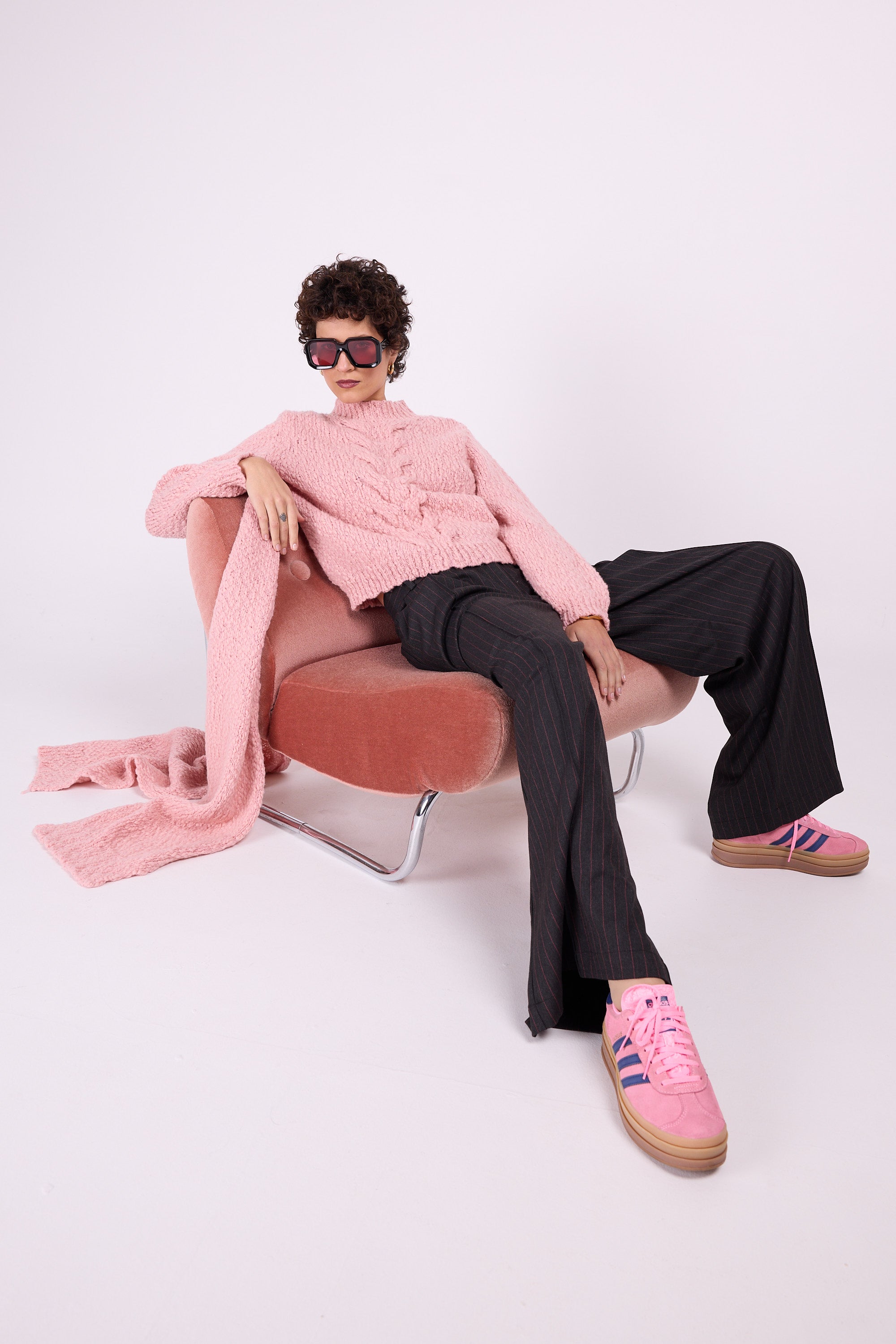 Heerlijk knusse sjaal in 'bubbly wool', een wolmix garen met bobbelige structuur. Gebreid in België. Mooi op zich of in combinatie met een trui in hetzelfde garen. Probeer jij het samen met trui Belgrado, Brasilia of Bogota?