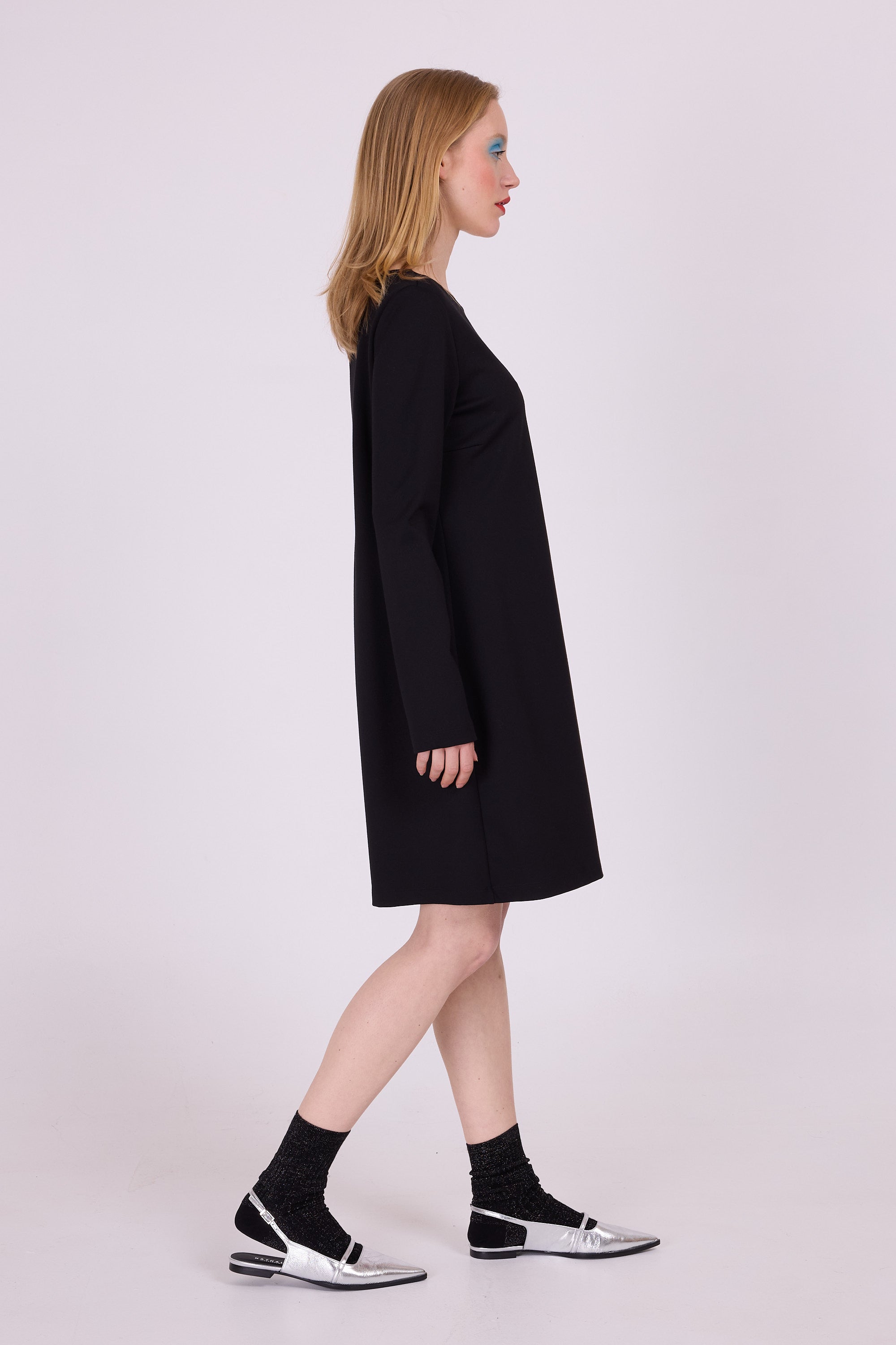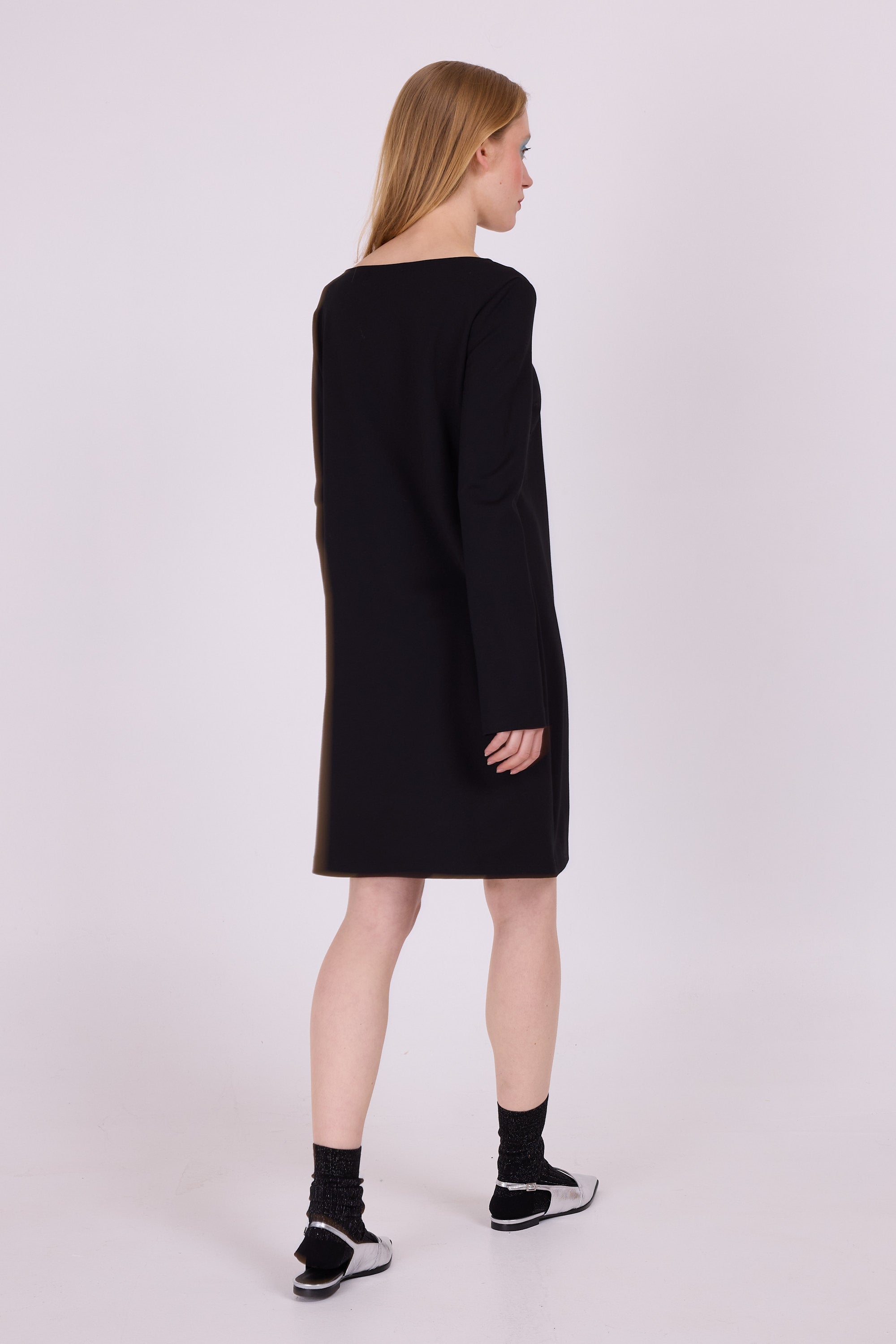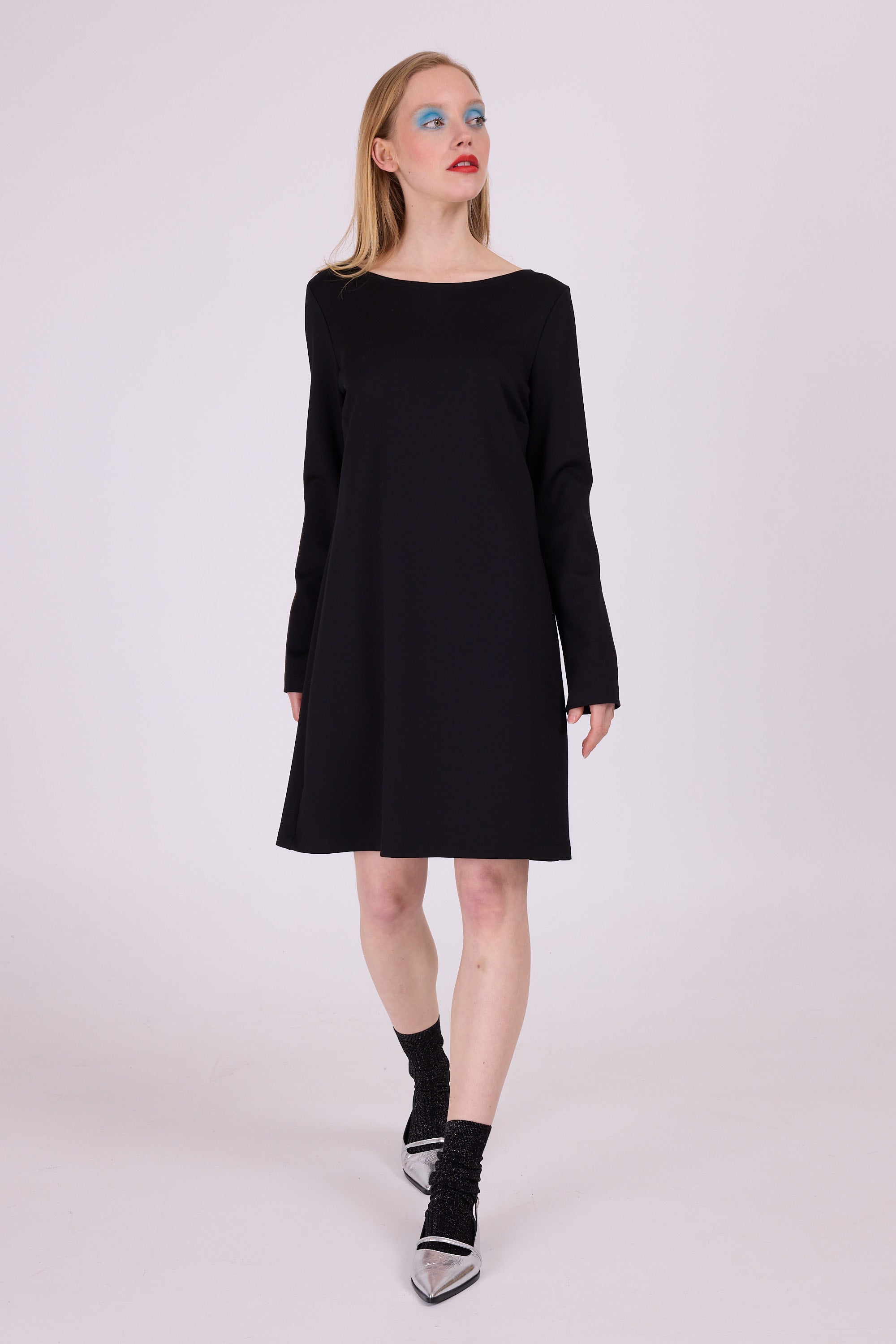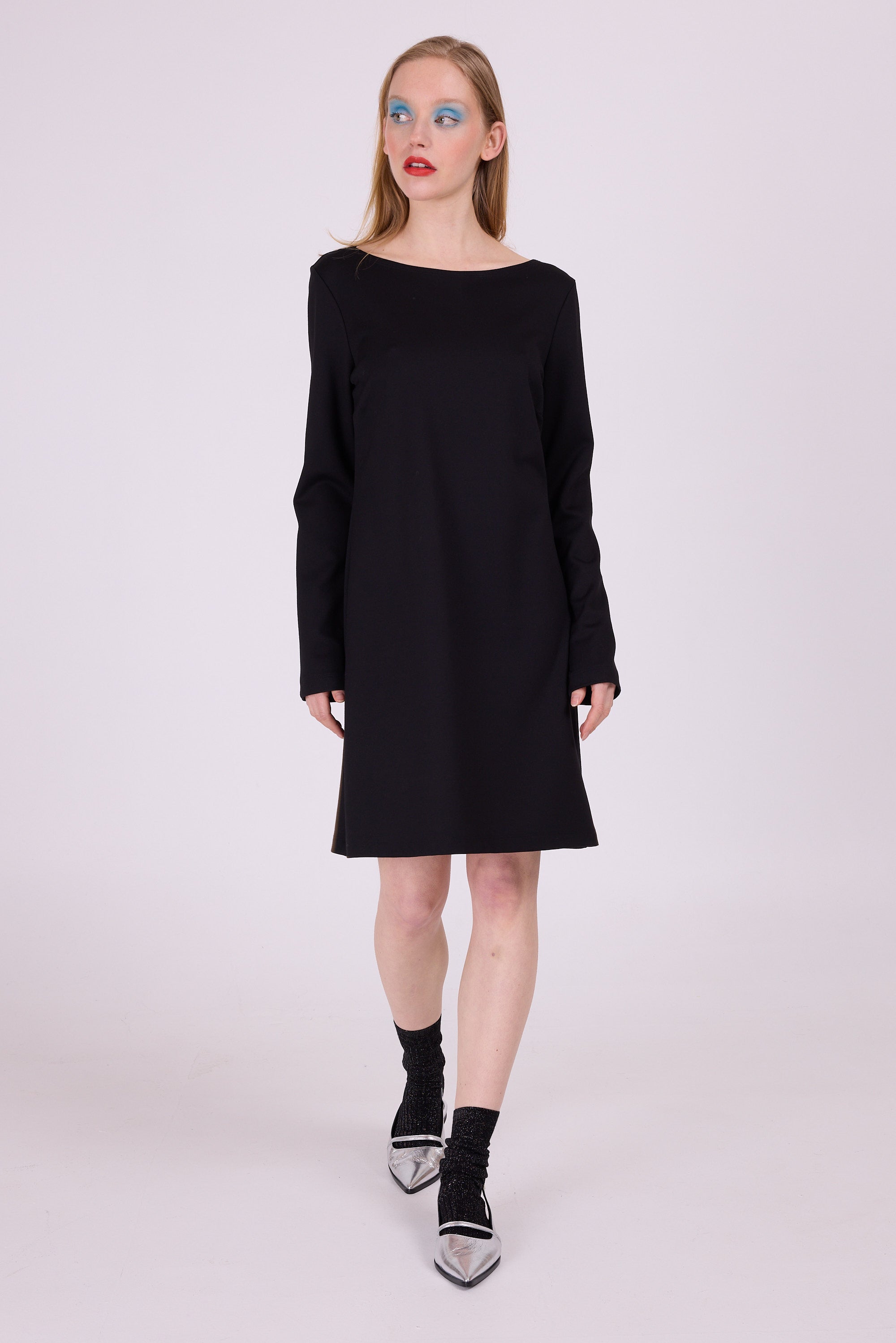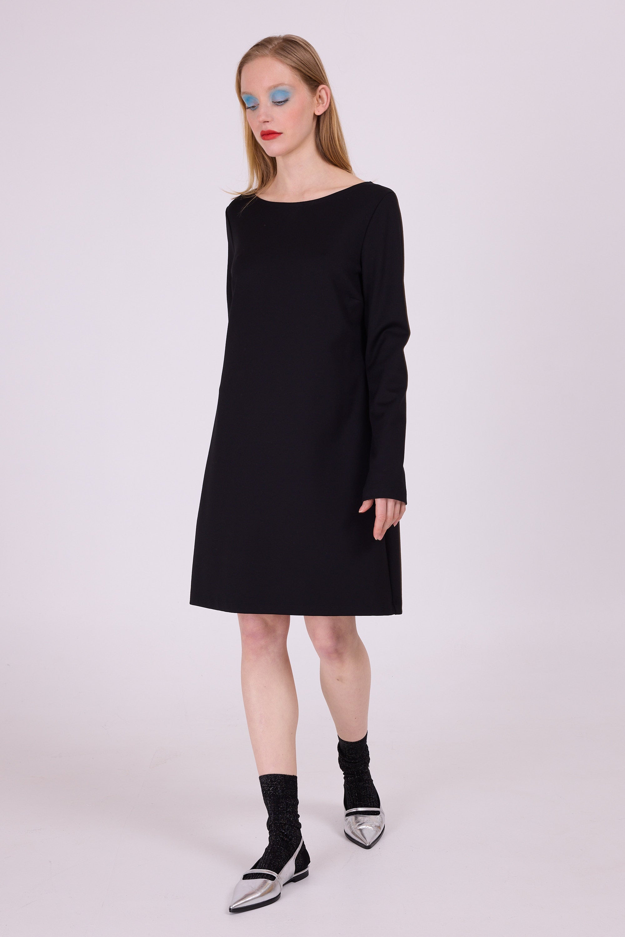 Twiggy-jurkje: boven de knie, A-lijn en met een elegante boothals. Een perfecte basic die je eindeloos kan dragen, zowel casual als gekleed.