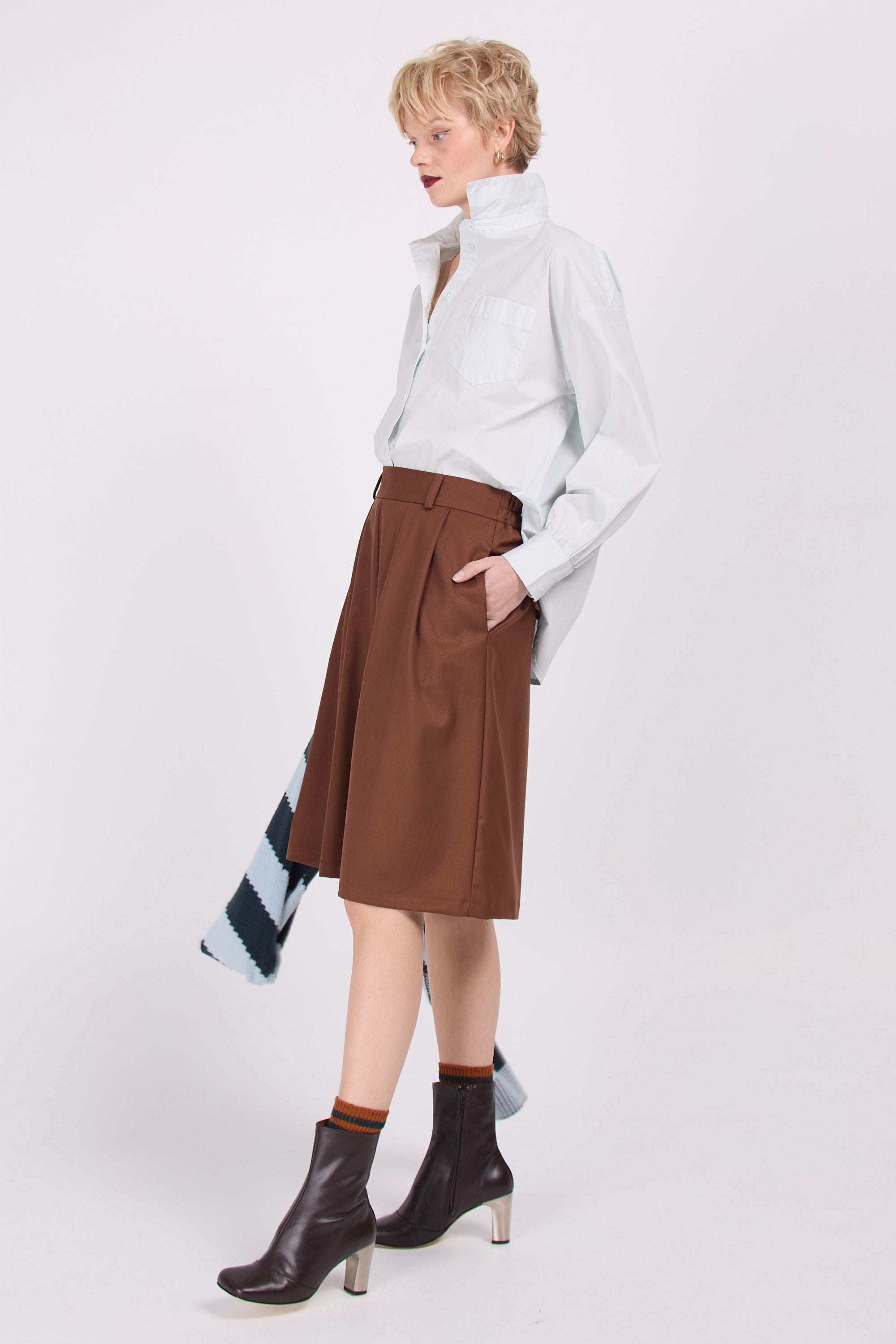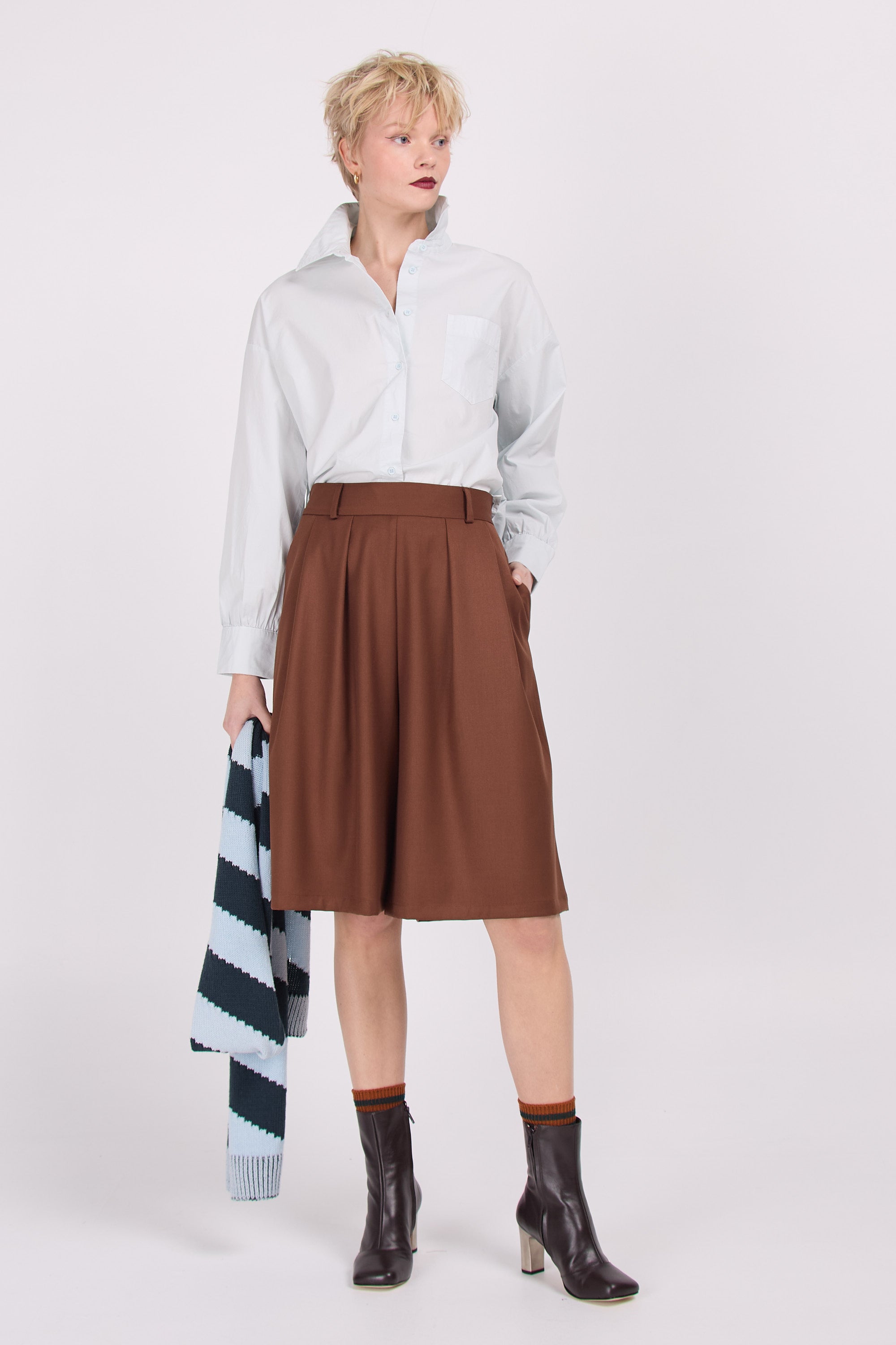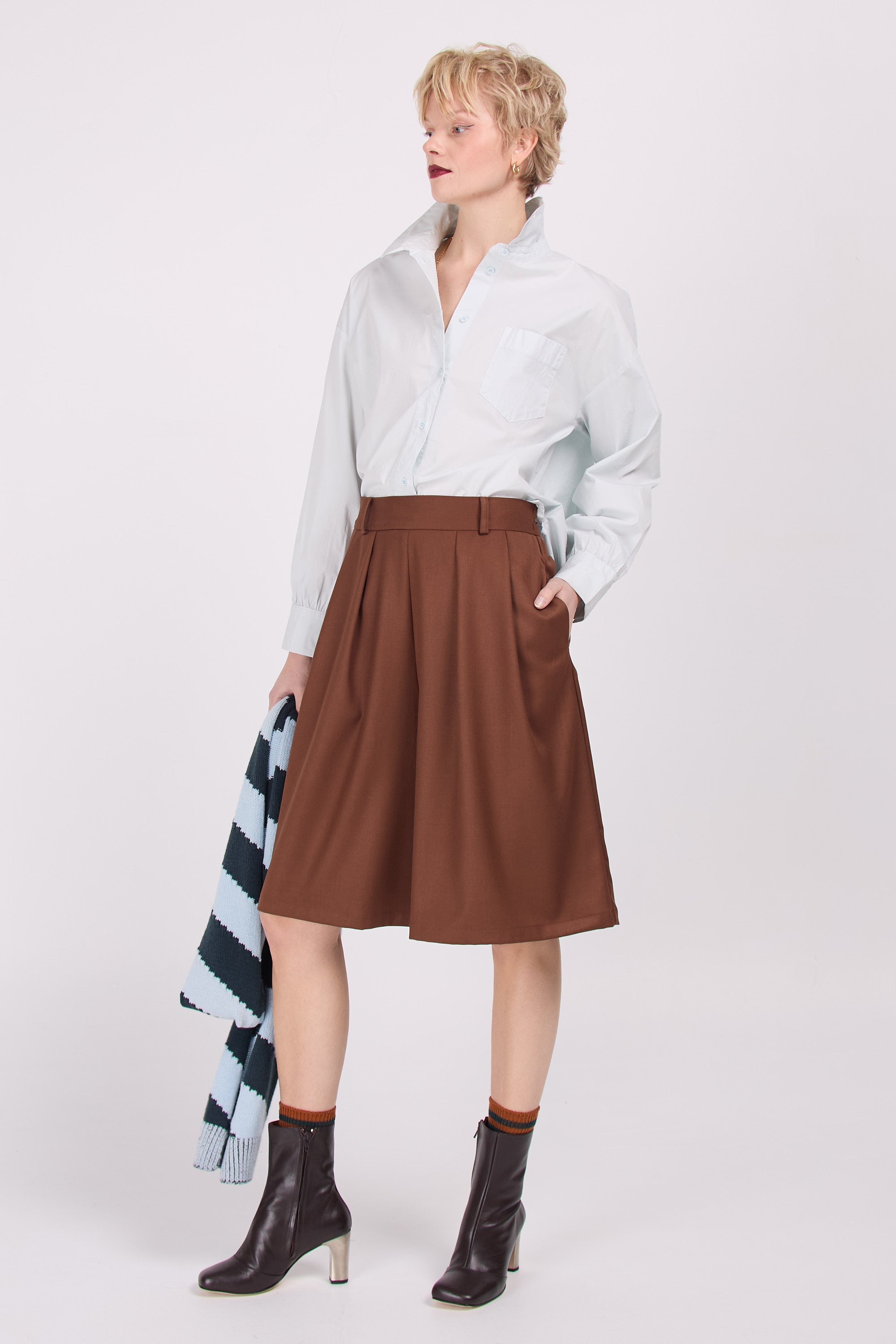 Mag het eens wat anders zijn? Onconventionele Eddie houdt het midden tussen een broekrok en bermuda en verenigt het beste van beide werelden. Praktischer en warmer dan een rok, maar met een elegante flair die je niet van een standaard bermuda verwacht. Ondervind zelf het draagplezier!