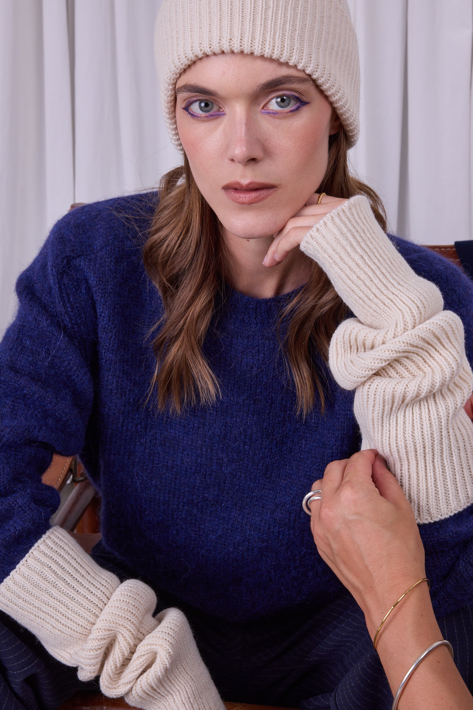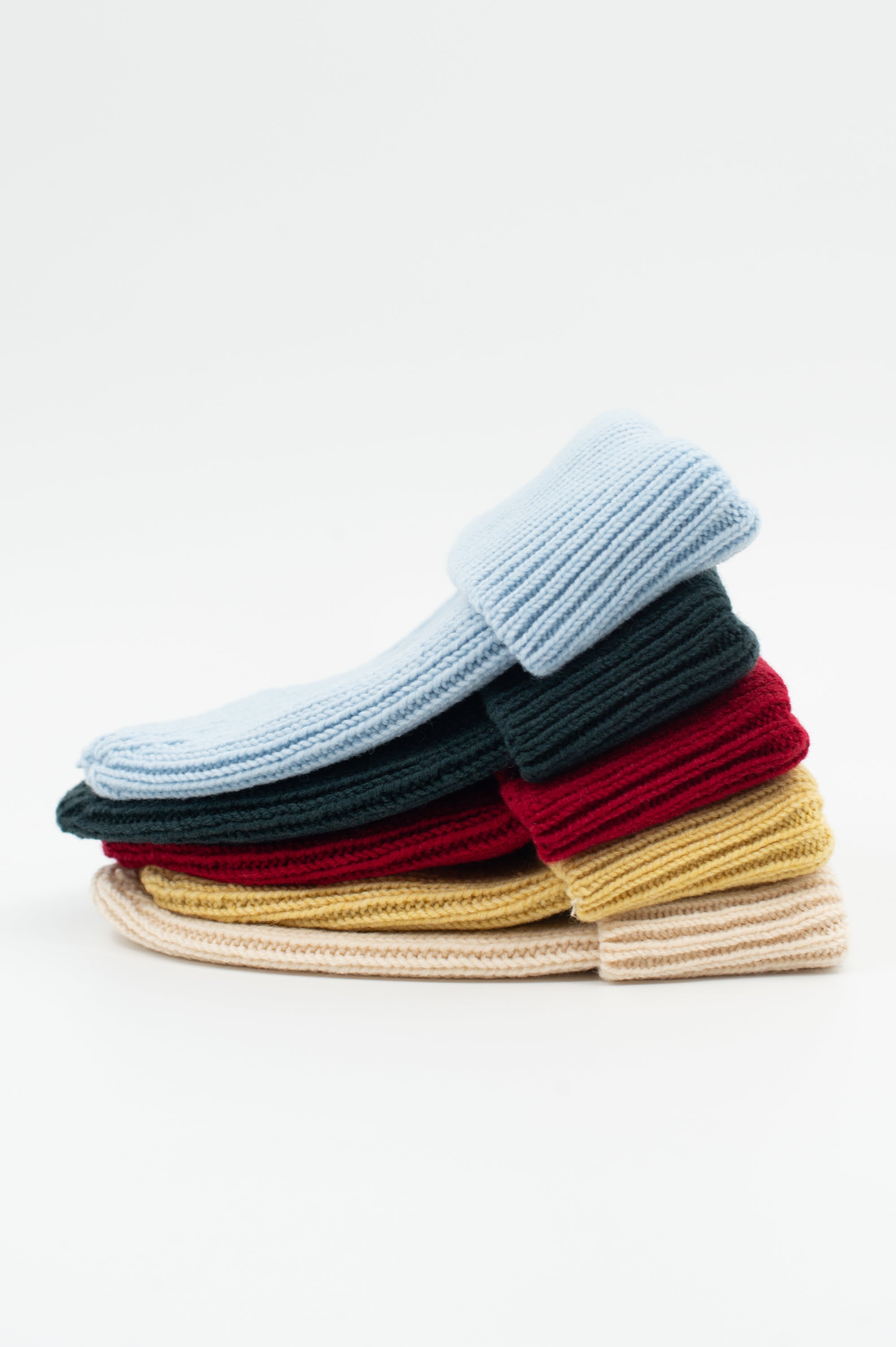 Geribde muts met brede omslag. Gebreid in België in merinowolmix, heerlijk warm en toch zacht. Draag als set in combinatie met de Wales sjaal en Warren been- en armwarmers.