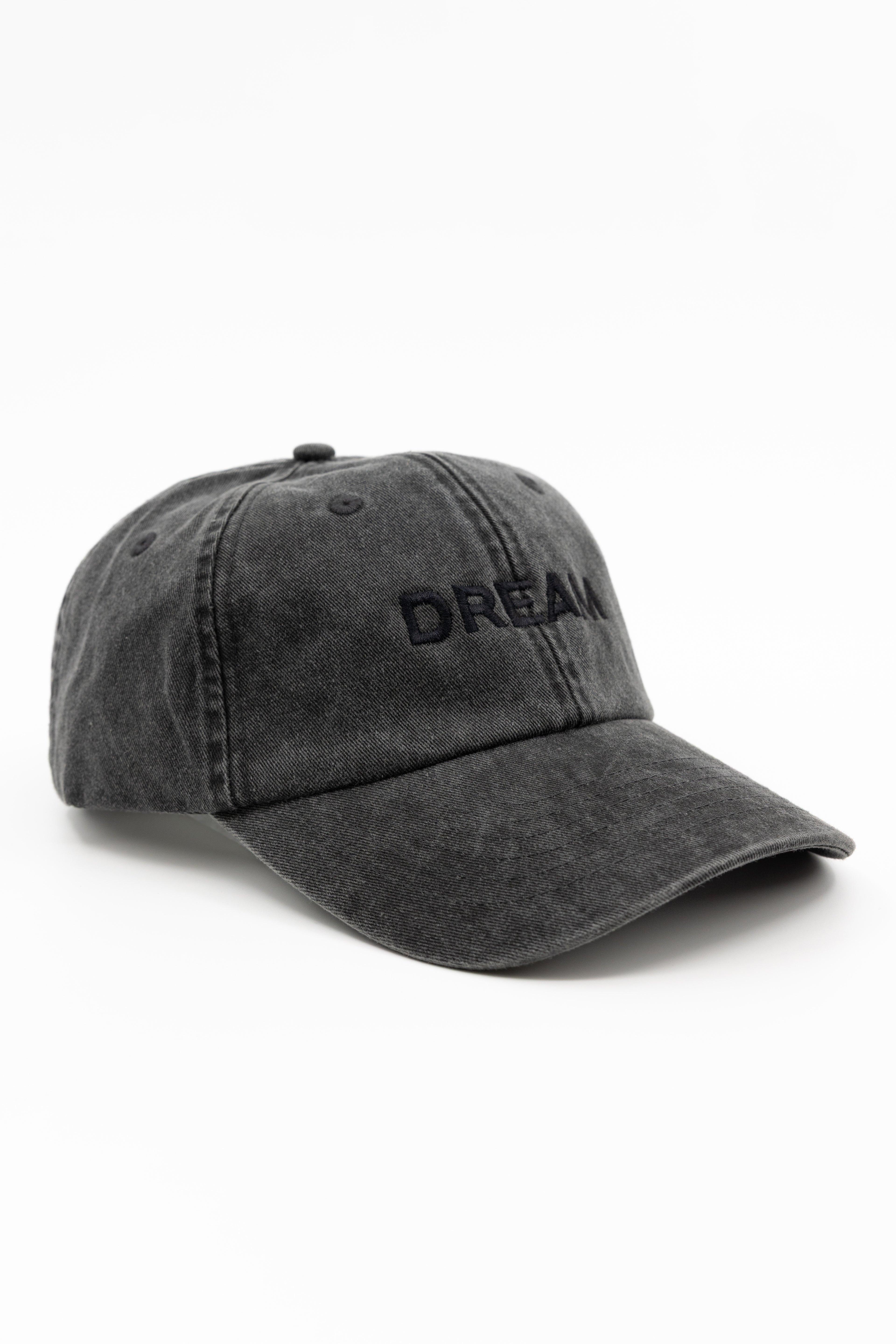 Pet met DREAM geborduurd op vintage cotton met een verwassen look.