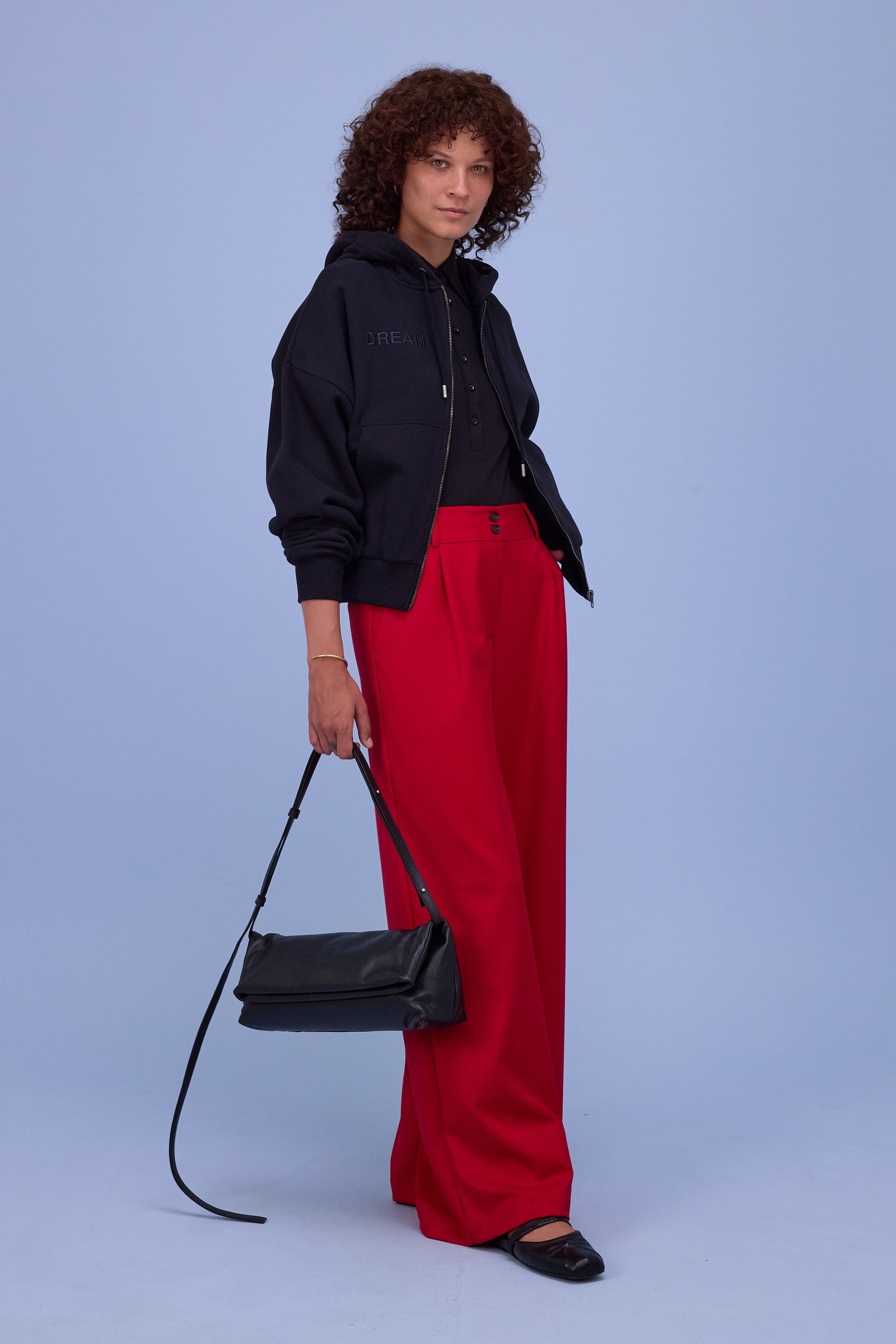 Des jambes larges élégantes, une taille haute et des plis subtils confèrent à ce pantalon un caractère féminin et audacieux. Un best-seller depuis des années. Cette saison, il revient dans la collection avec des jambes un peu plus longues qu’auparavant.