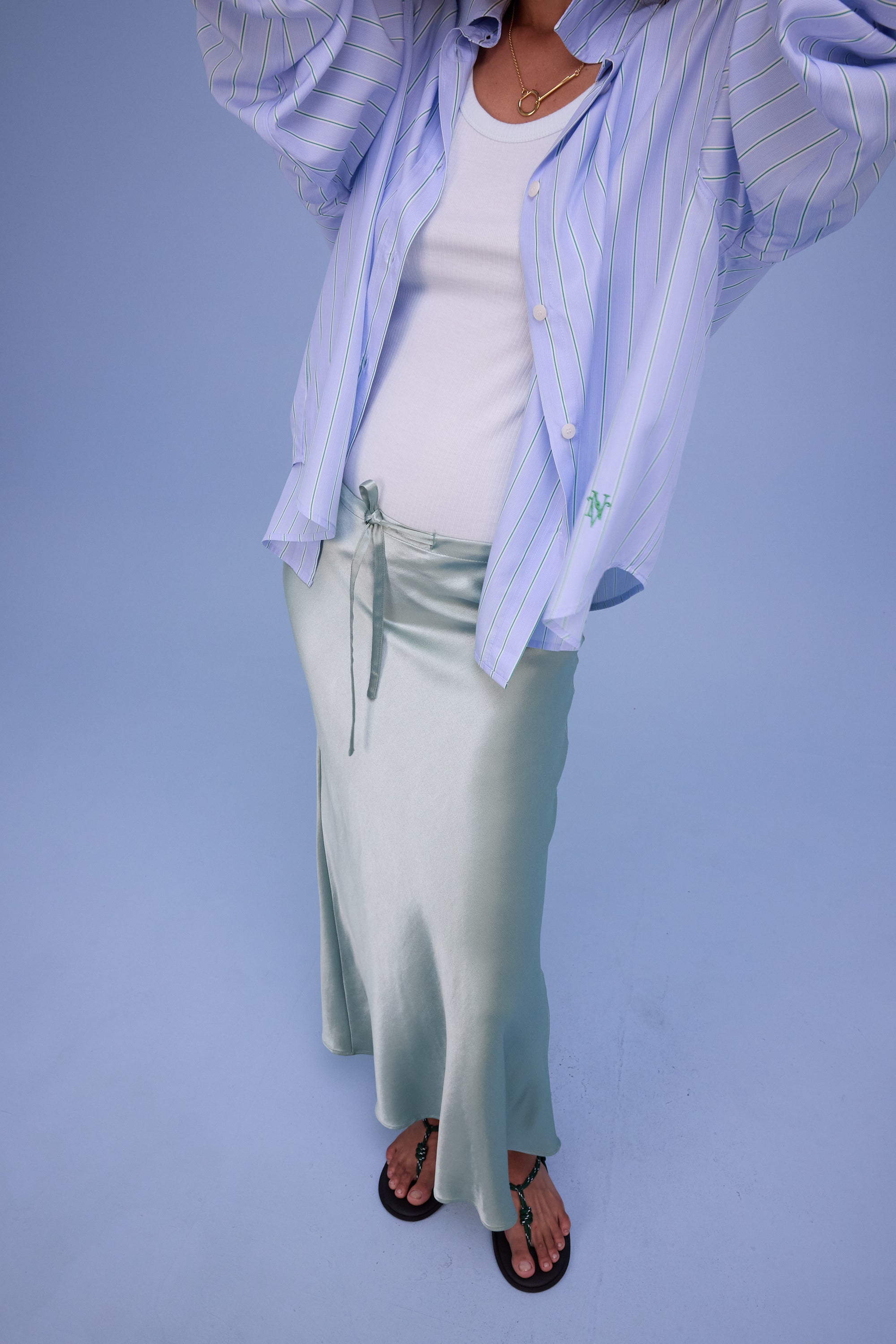 Jupe midi élégante. Le tissu satiné est dense et solide, ce qui le rend moins susceptible de marquer que d’autres tissus satinés plus fins. Portez-la en ensemble avec le chemisier Daniëlle ou combinez-la de façon décontractée ou habillée selon vos envies.